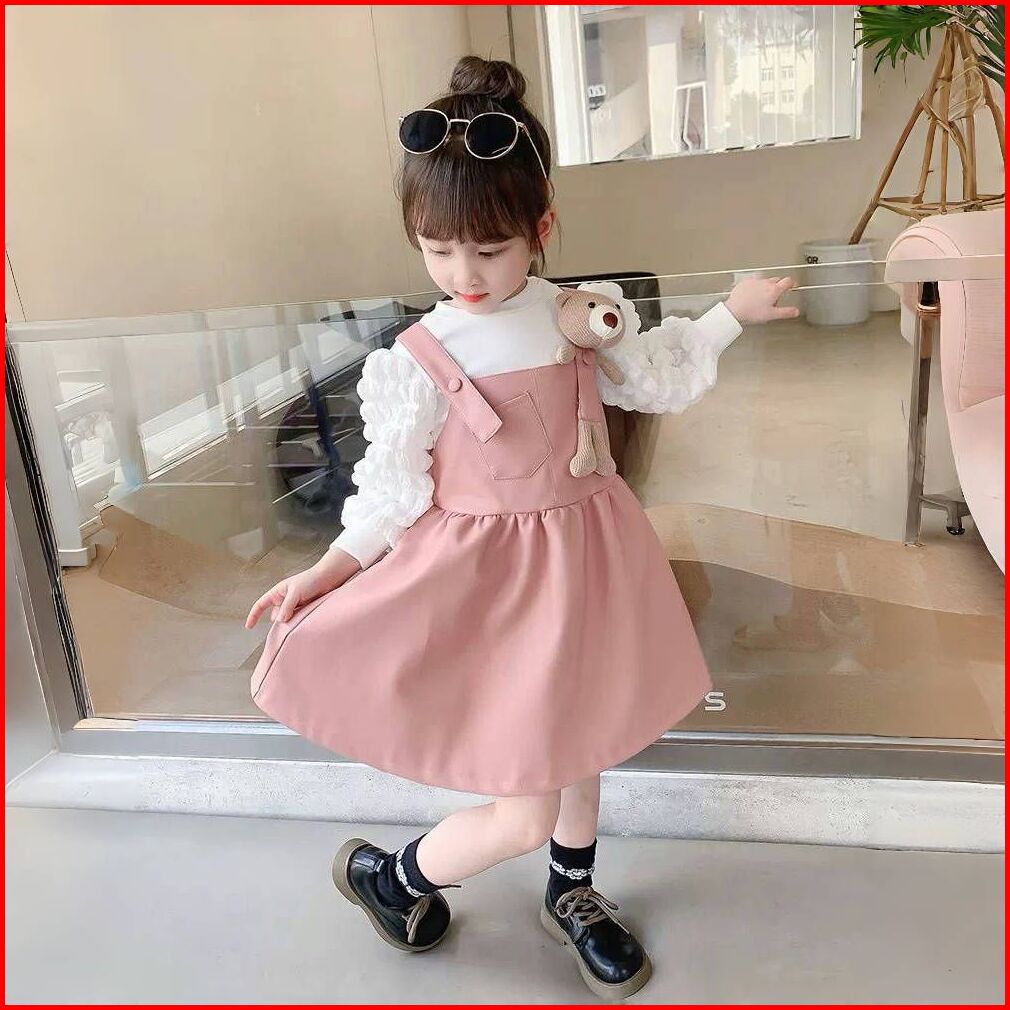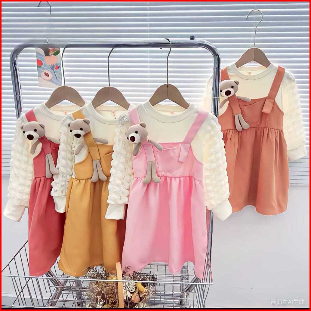 4-8tahun Dress Tanggung Anak Cewek Beruang Lucu Lengan Jagung Fashion