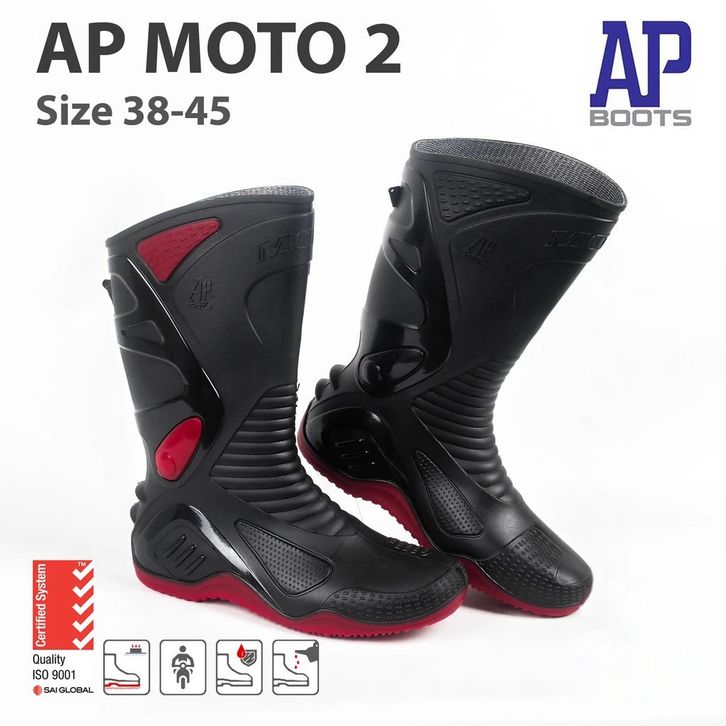 Sepatu Boot Tinggi AP Moto 2 AP Boots Karet Lokal Anti Air Slip Lentur Sepeda Motor Touring