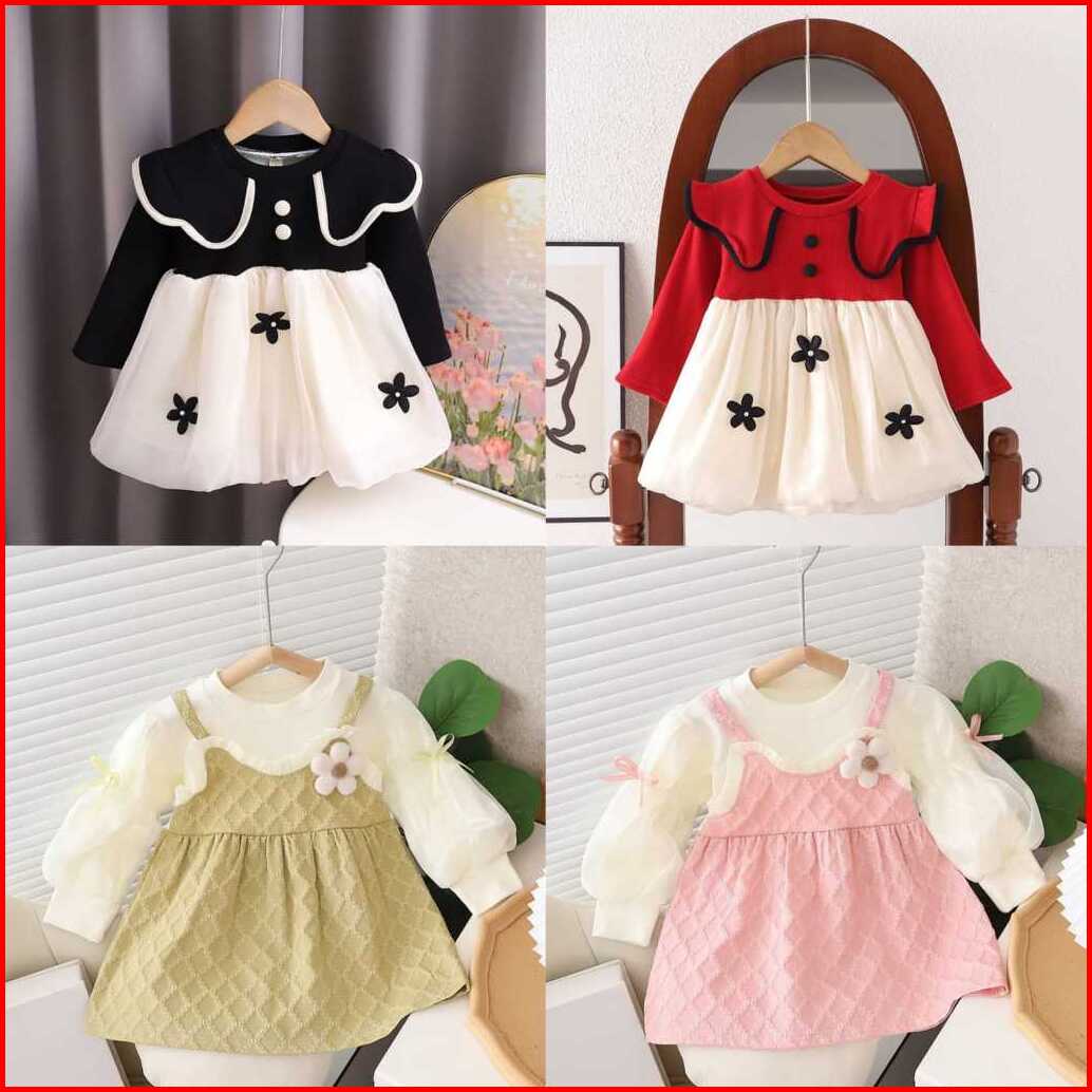 Cn01-cn05 Dress Setelan Elegant Dress Korean Style Lengan Panjang Anak Perempuan