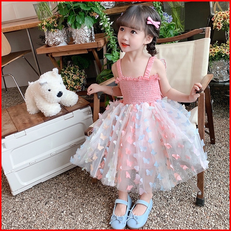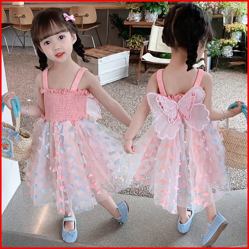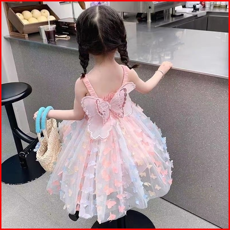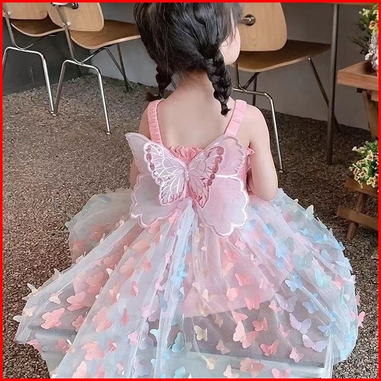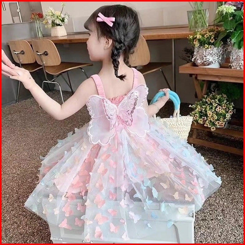 Haasya Kids 1-6 Tahun Gaun Gadis Baru Modis Kepribadian Trendi Harta Wanita Gaun Peri Kupu-kupu Kasual Korea