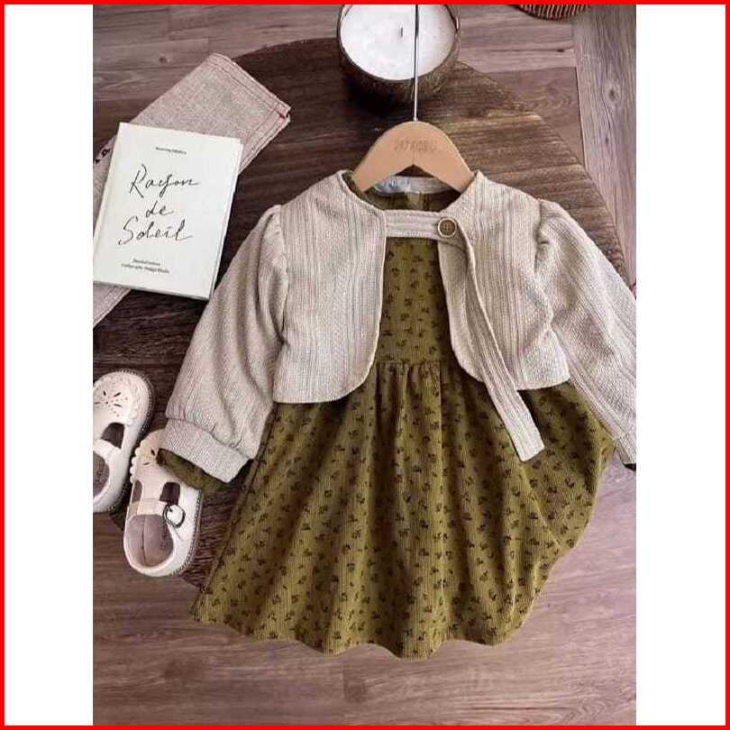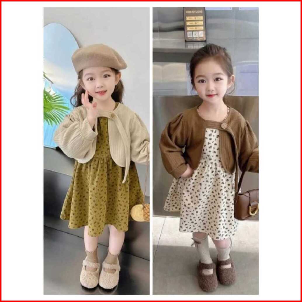 Dress Anak Korea Import Super Premium 2 In 1 Dress Plus Blazer Untuk Usia 3 Bulan - 4 Tahun