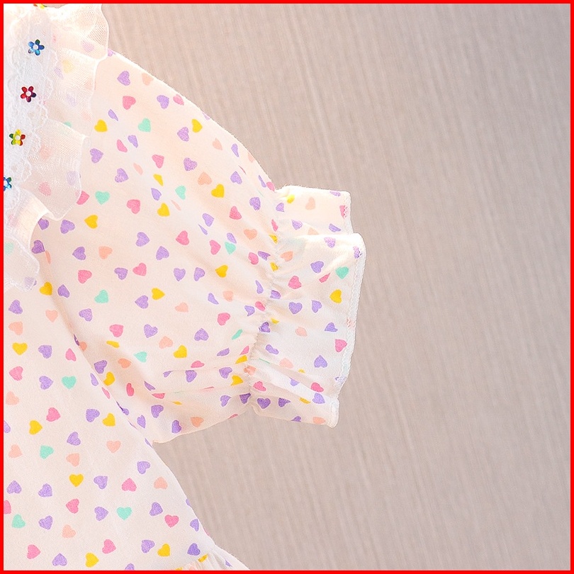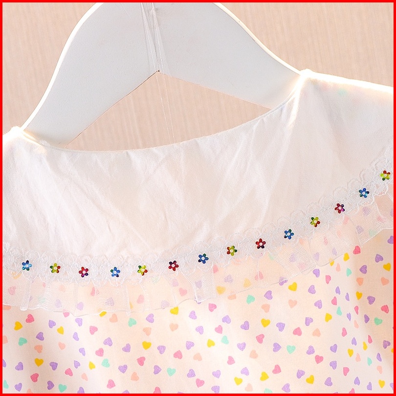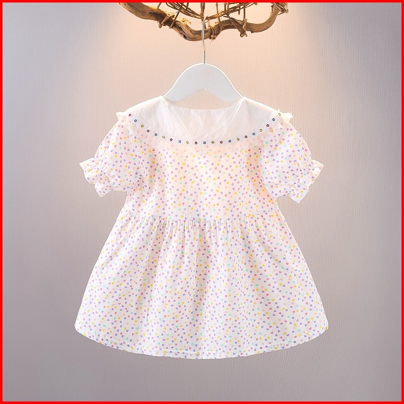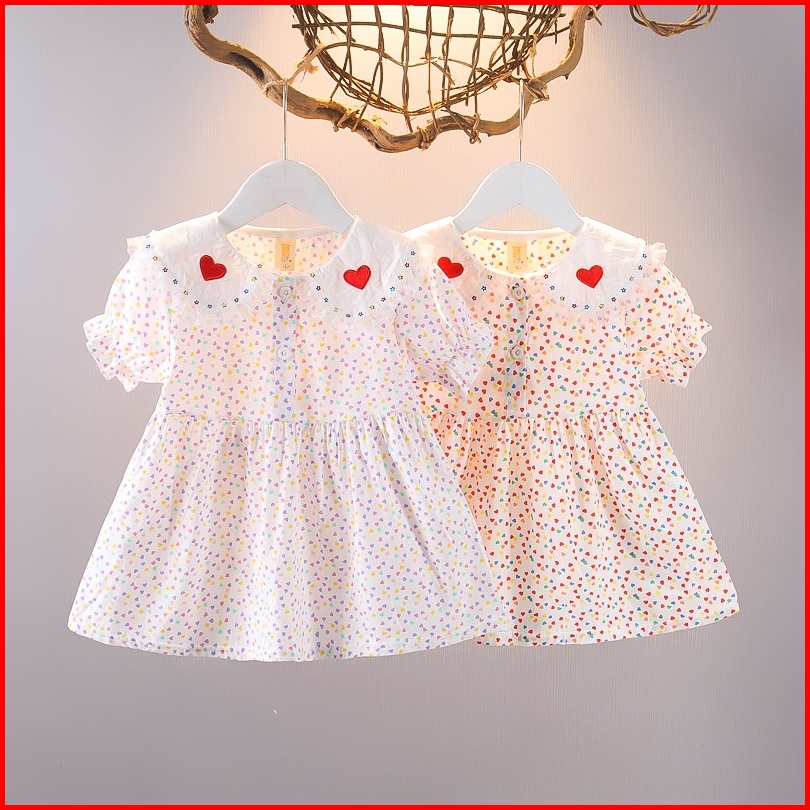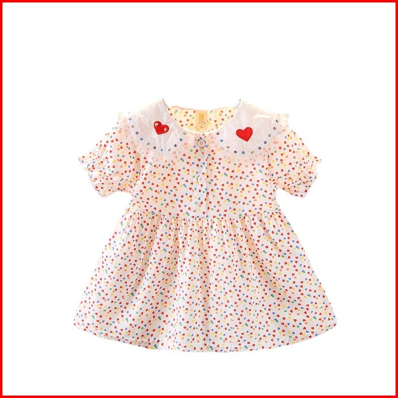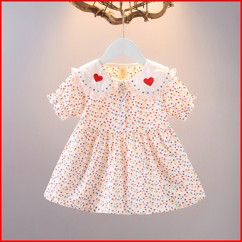 Haasya Kids 1-4 Tahun Anak Perempuan Berusia Barat Dress Lengan Pendek Baby Floral Skirt Kerah Cinta Anak Rok Anak