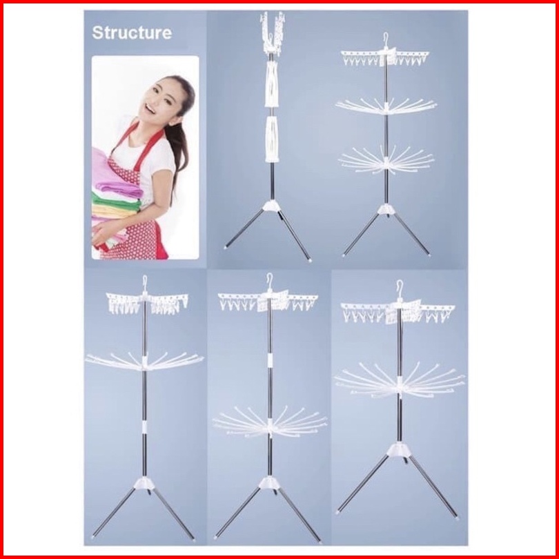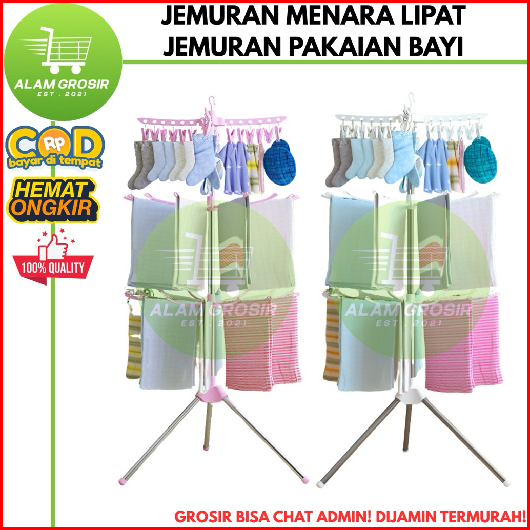 Ag Rak Jemuran Menara Lipat Stainless Jemuran 3 Susun Jemuran Baju Jemuran Pakaian Bayi