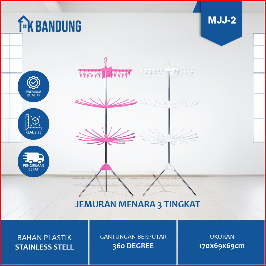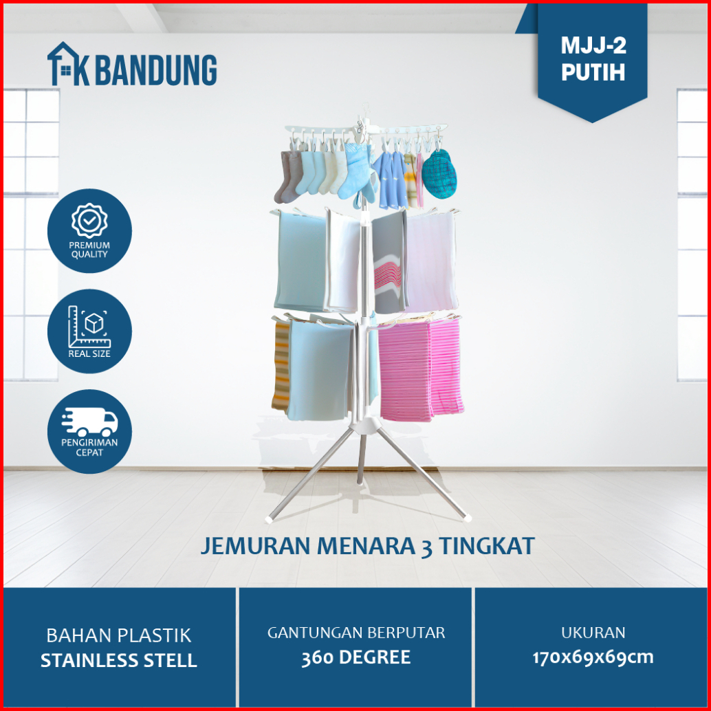 Wow Jemuran Menara 3 Tingkat Jemuran Baju 3 Lipat 16 Jari Jari 24 Jepitan Baju