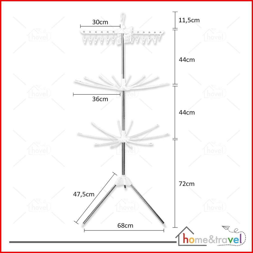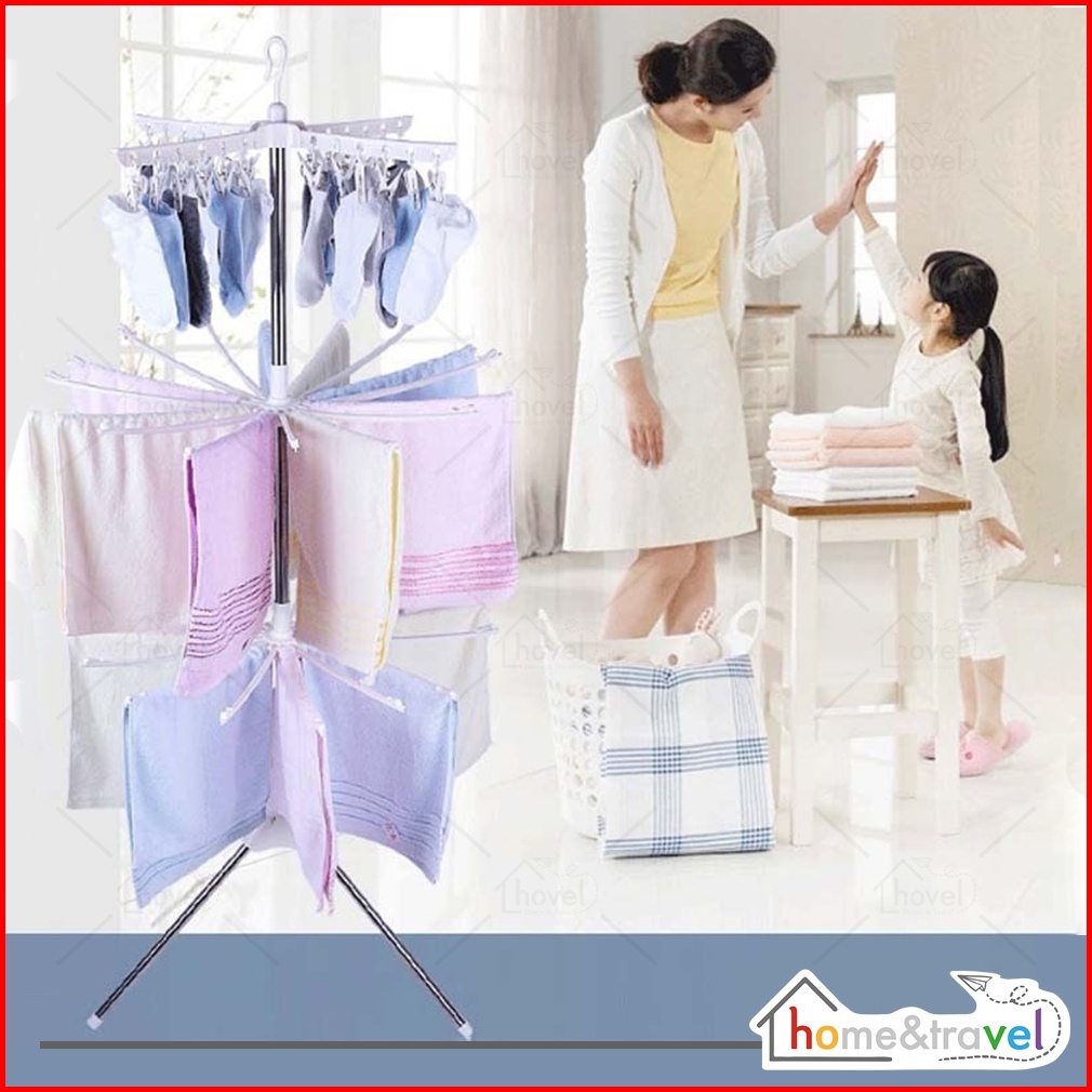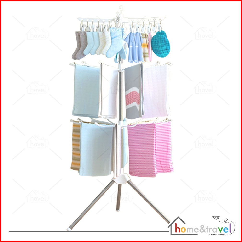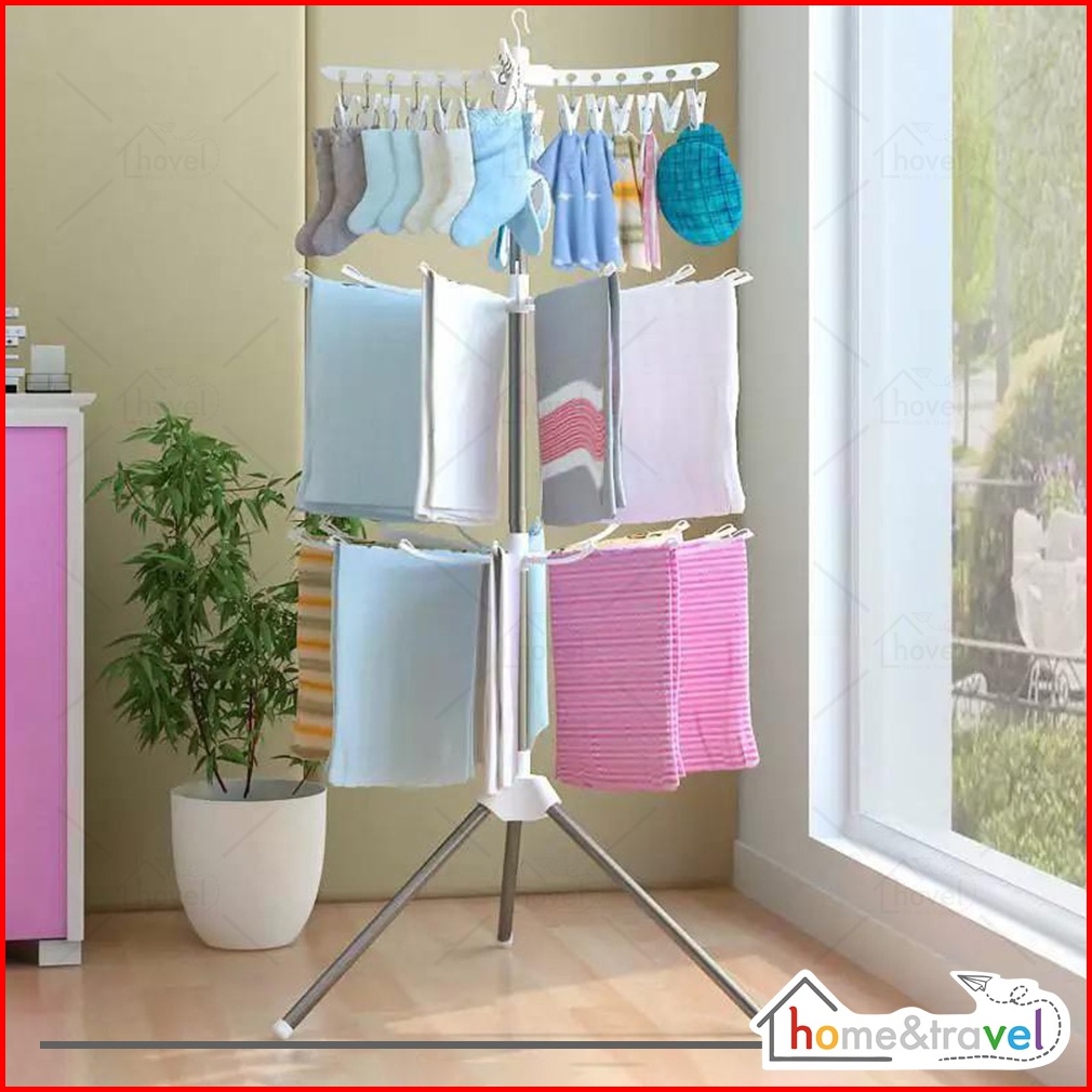 Hovelshop Rak Jemuran Baju Handuk Bayi Lipat Stainless Steel 3 Tingkat