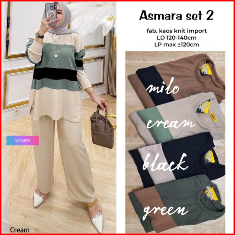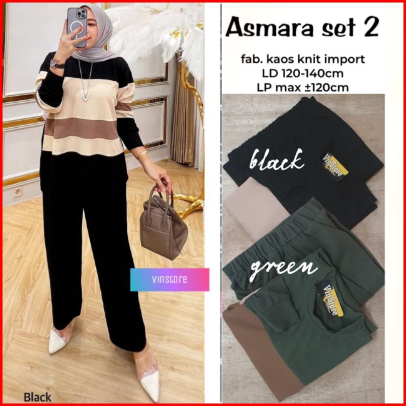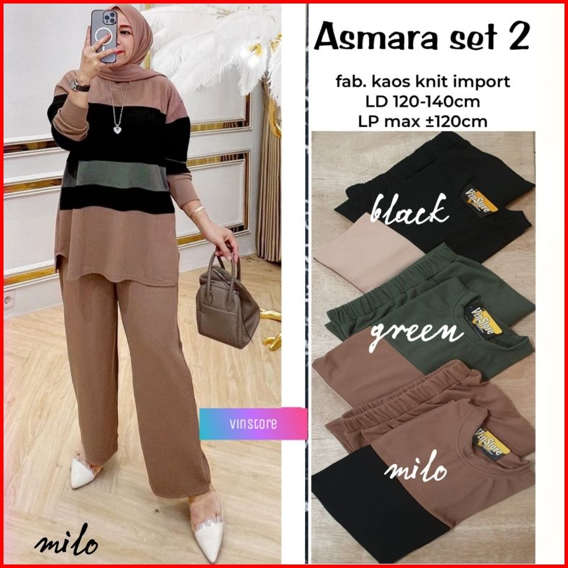 Setelan Wanita Jumbo Asmara Set Ori Vinstore Bahan Kaos Knit Import Ld120-140 Celana Pinggang Karet