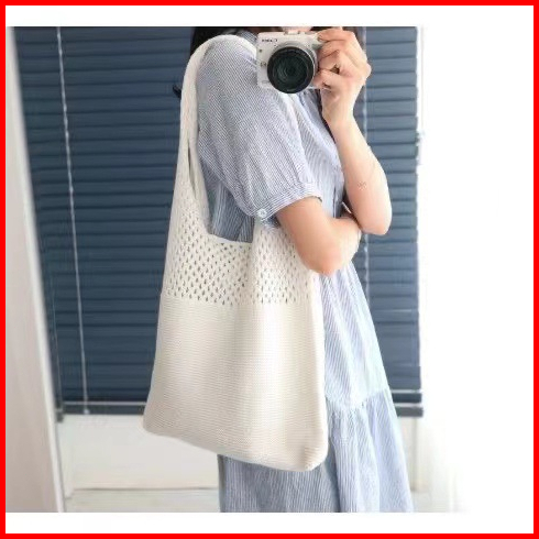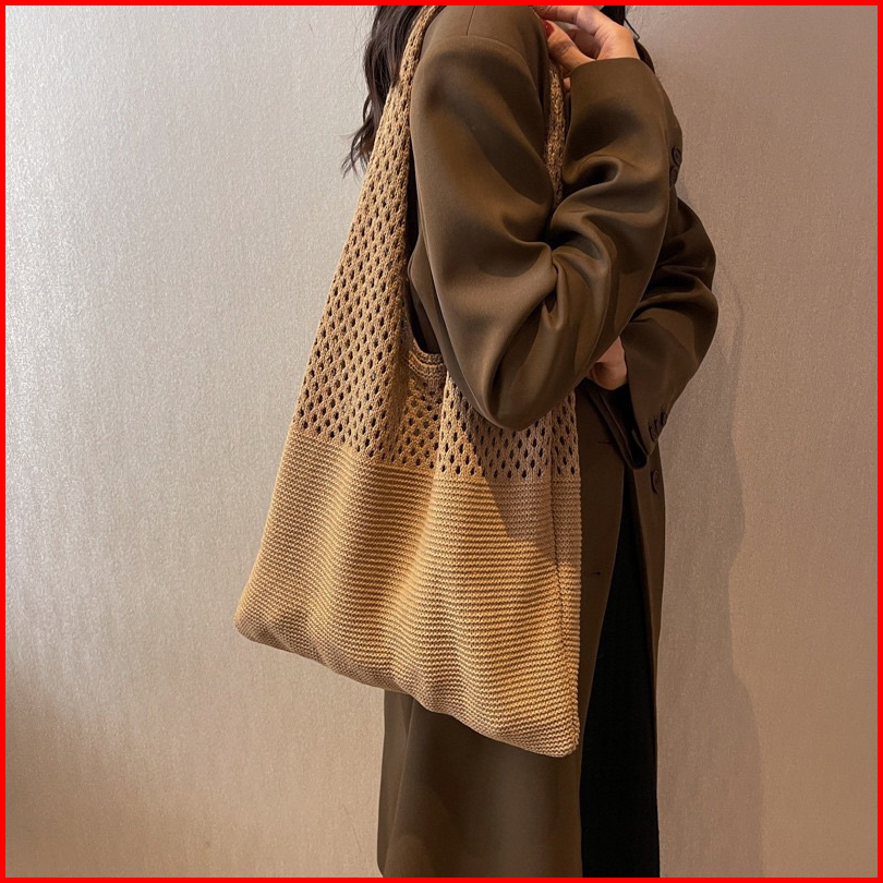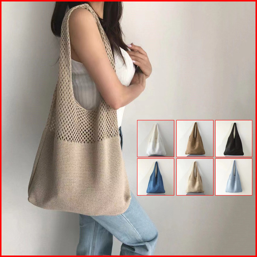 Knitted Tote Bag Tas Korea Rajut Besar Pantai Tas Wanita Solid Casual Bag Tas Kasual Casual
