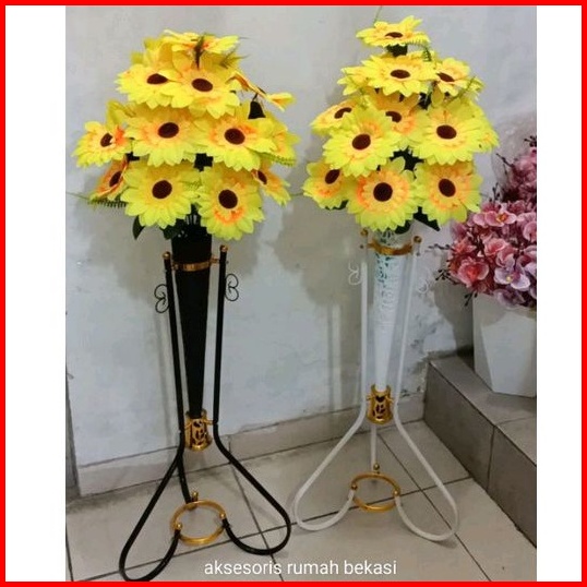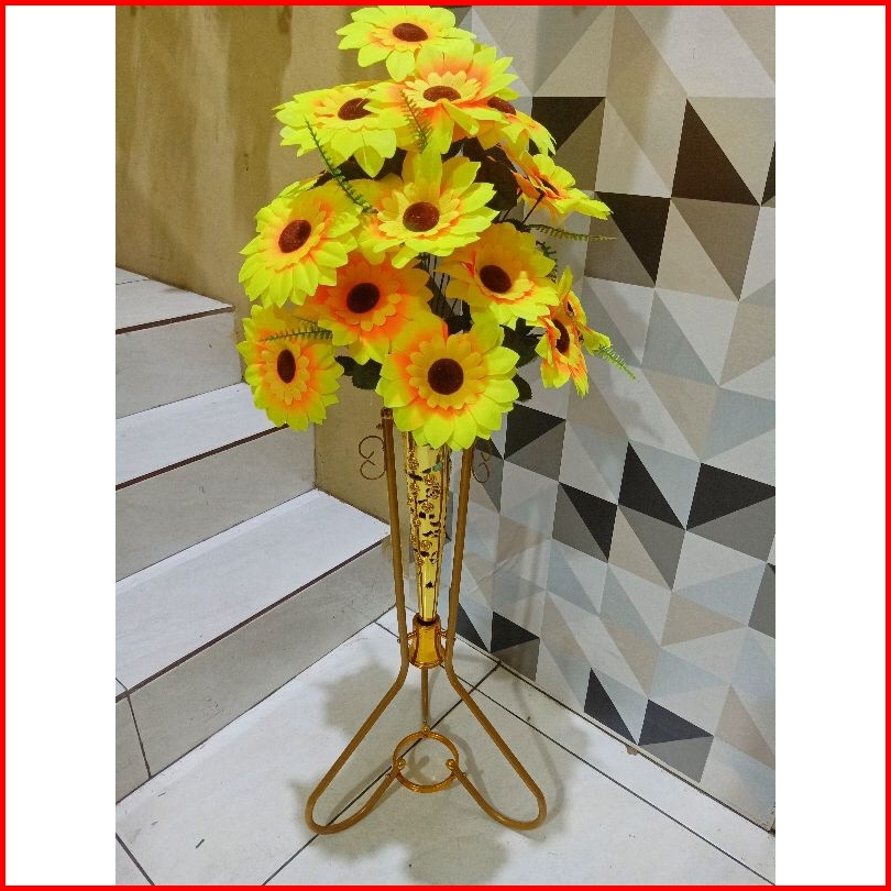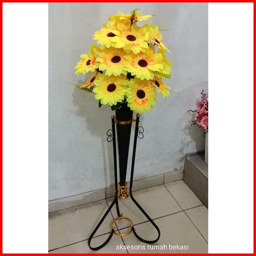 Bunga Matahari Artificial Dekorasi 18 Kuntum Dengan Pot Standing Besi Import
