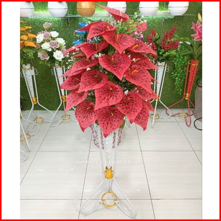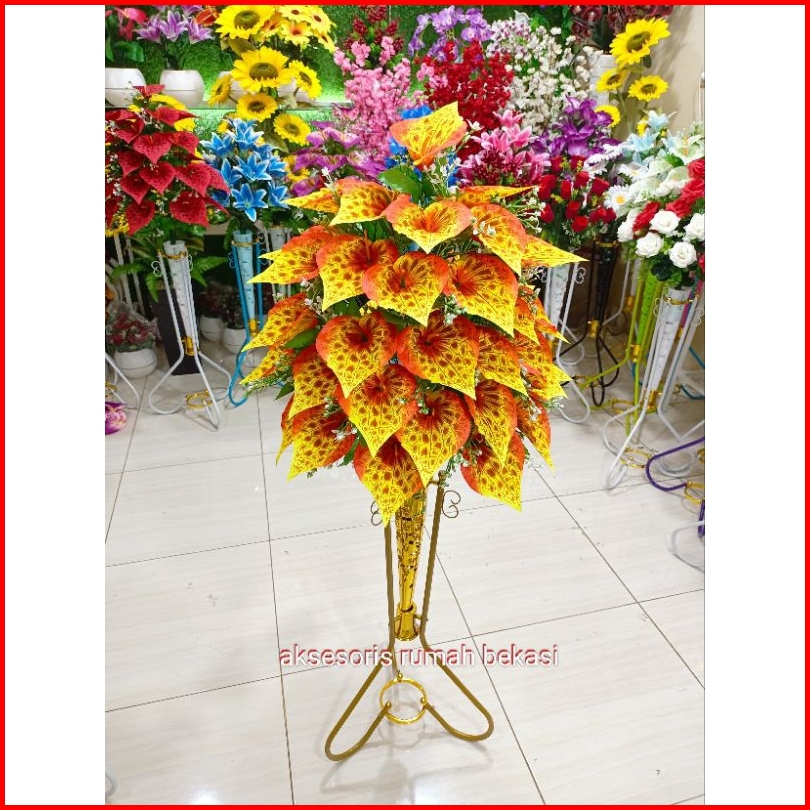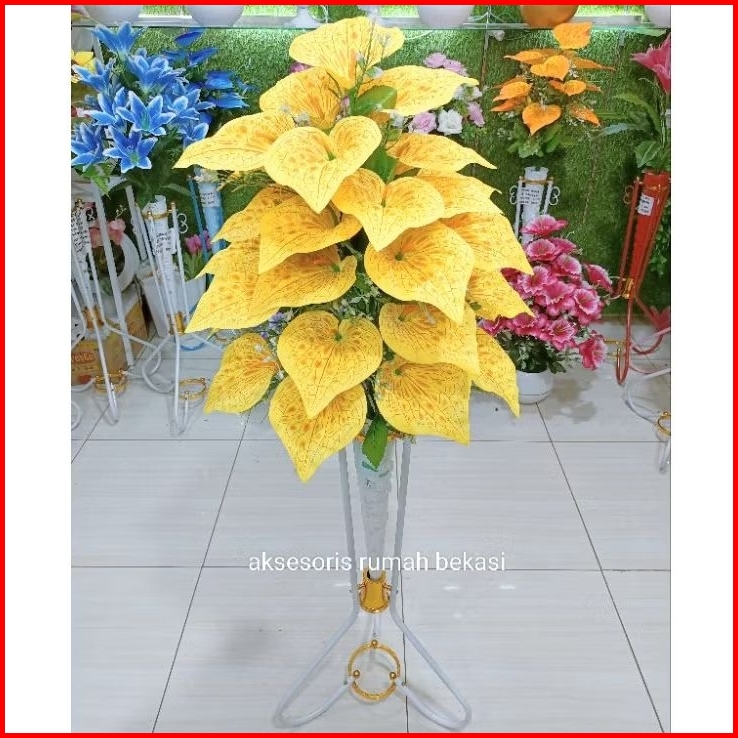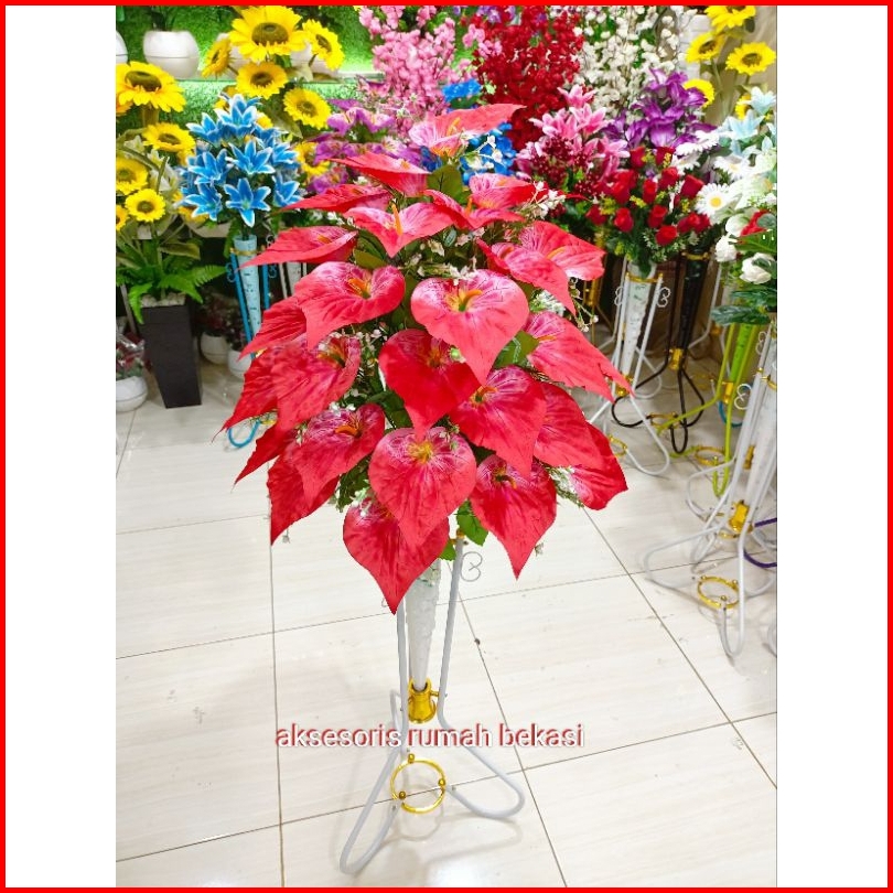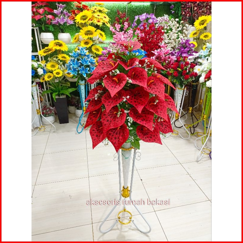 Rangkaian Bunga Aron Panda Artificial 36 Kuntum Dengan Pot Standing Besi