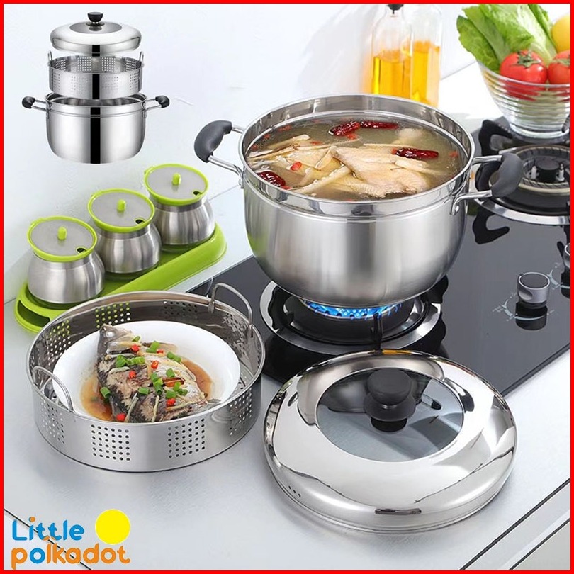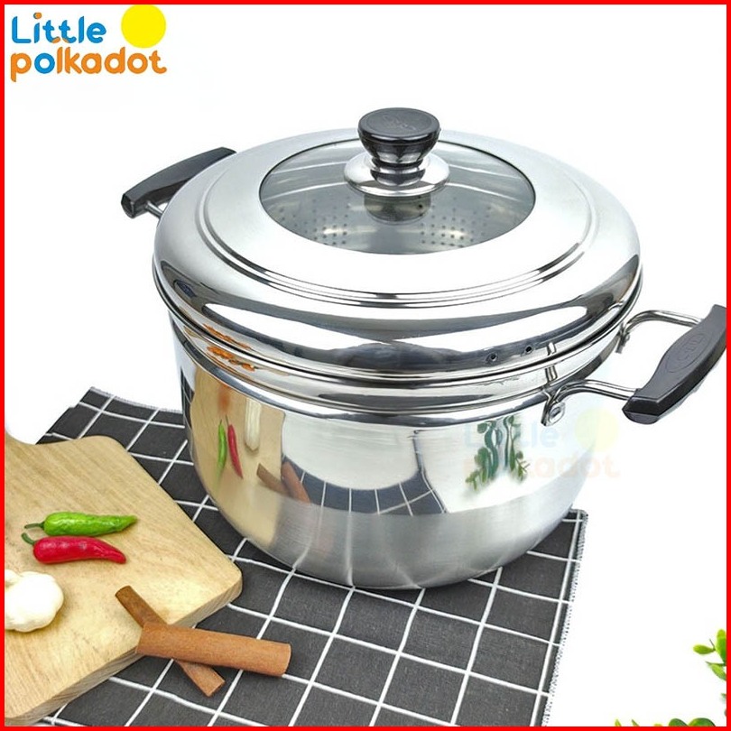 Littlepolkadotpanci Kukus 2 Susun Panci Kukus Stainless Steel Dandang Panci Steamer Langseng Sarangan Panci Kukusan Stai