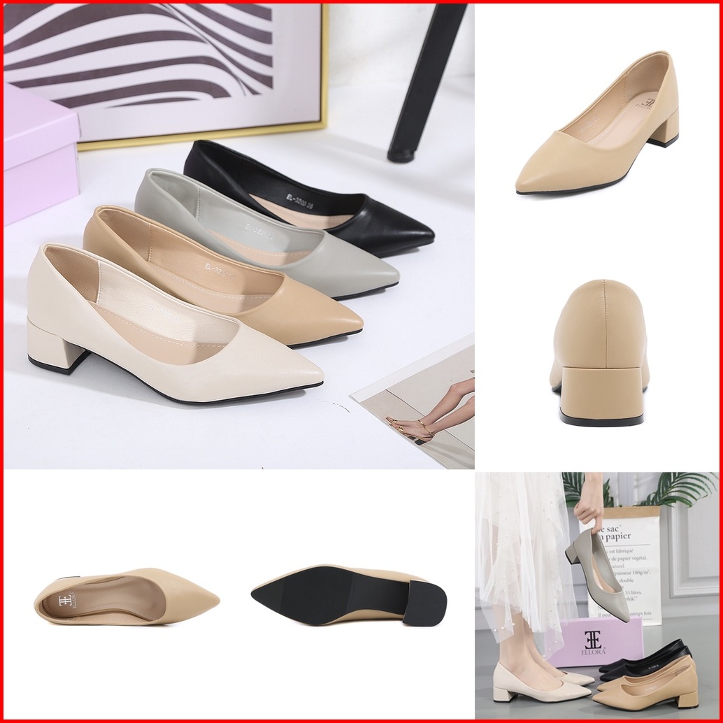 Ellora El-3200 Sepatu Kerja Hak Chunky Wanita Import 3.5cm