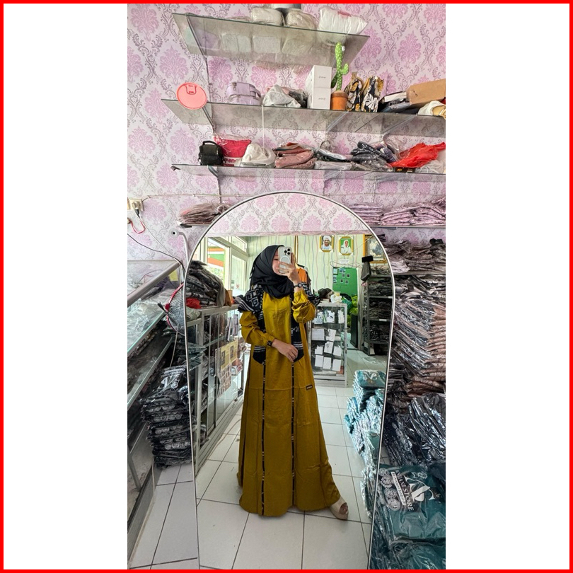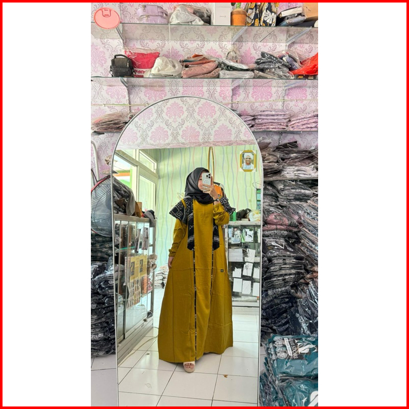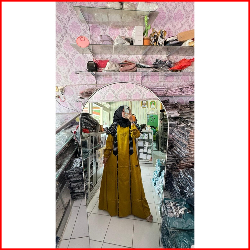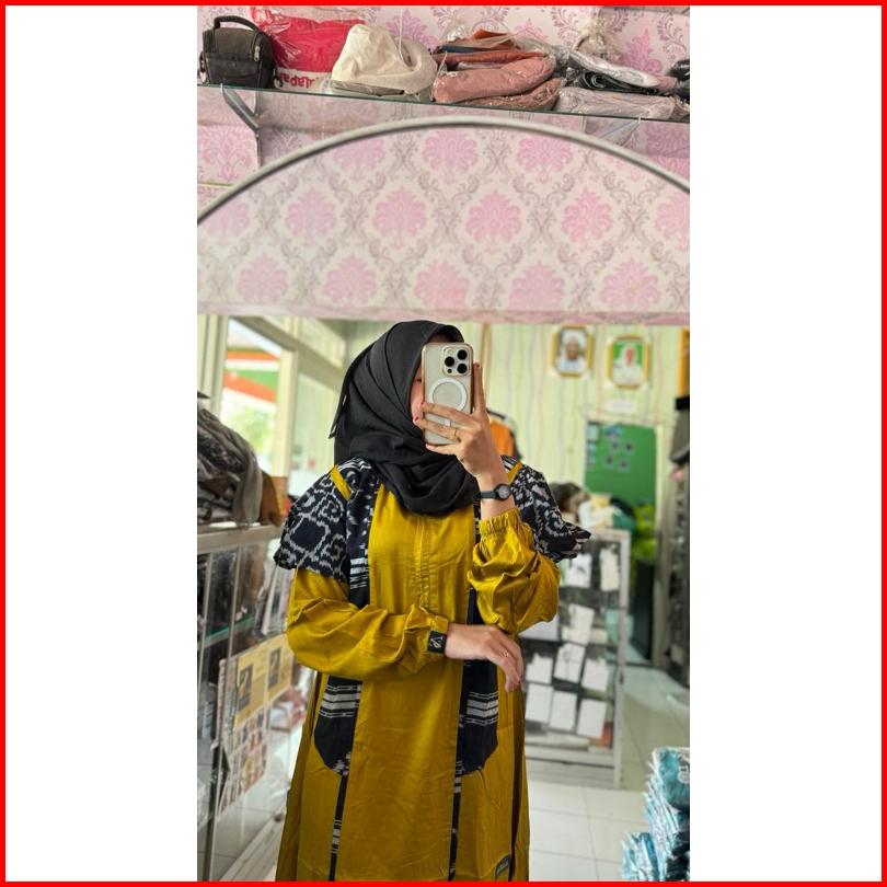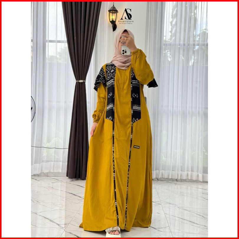 Dress Busana Muslim Terusan Gamis Motif Etnik Warna Kuning Yellow Mustard By Anjanistore