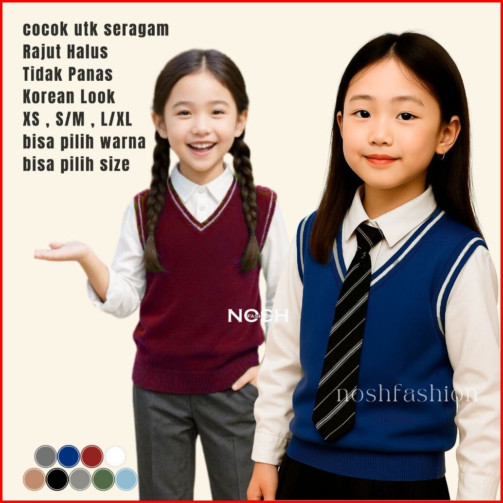 Rompi Rajut Anak Sekolah Unisex Knit Vest Rajut Anak Laki Laki Perempuan Nathania - Nosh