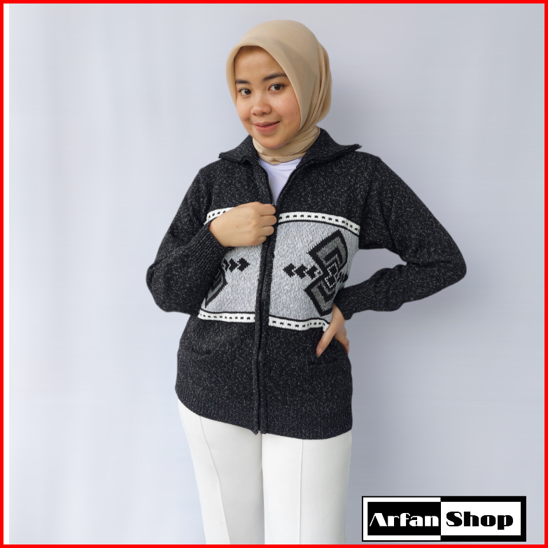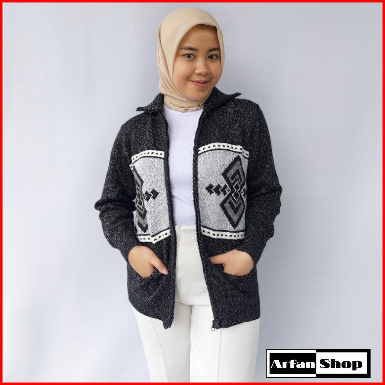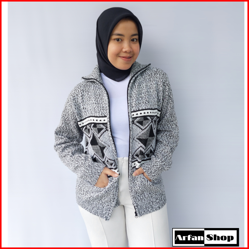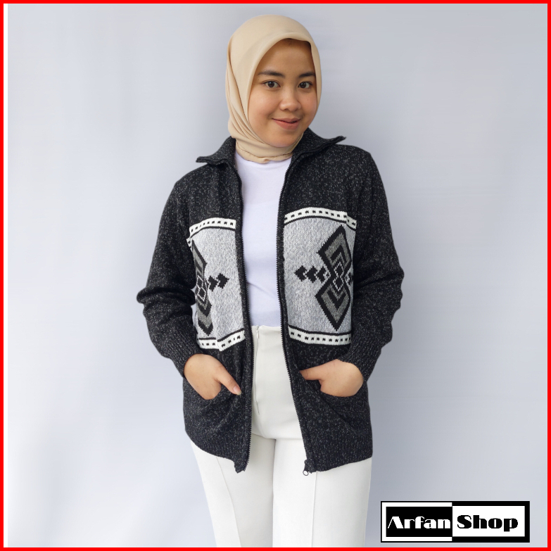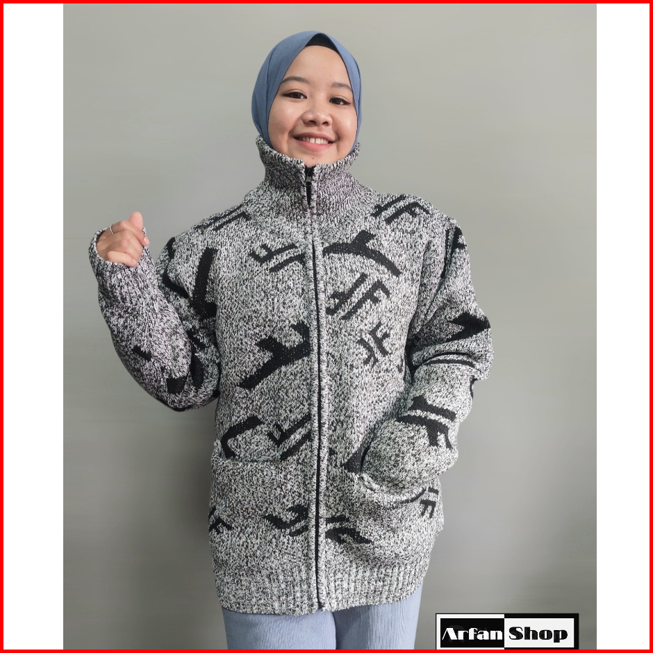Jaket Rajut Sweater Rajut Zipper Baju Hangat Pria Wanita Turtleneck Tebal