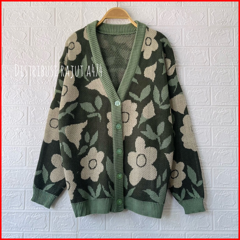 Melisa Flower Cardigan Rajut Motif Bunga Atasan Lengan Panjang Wanita Korea