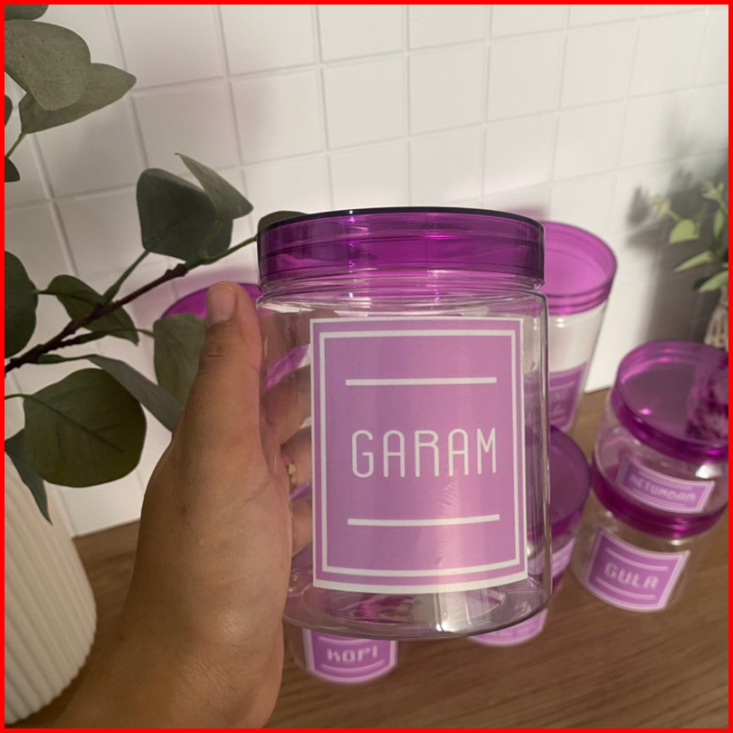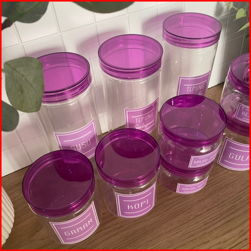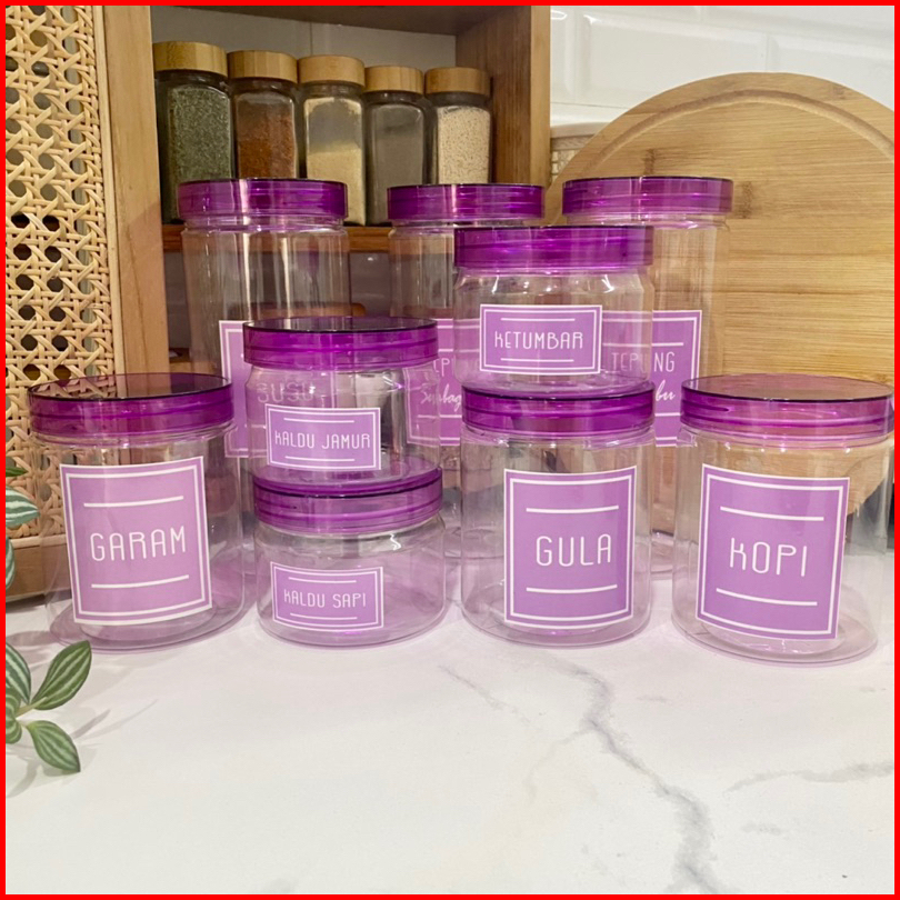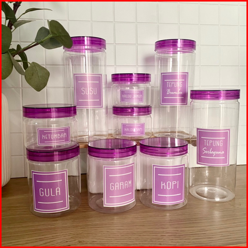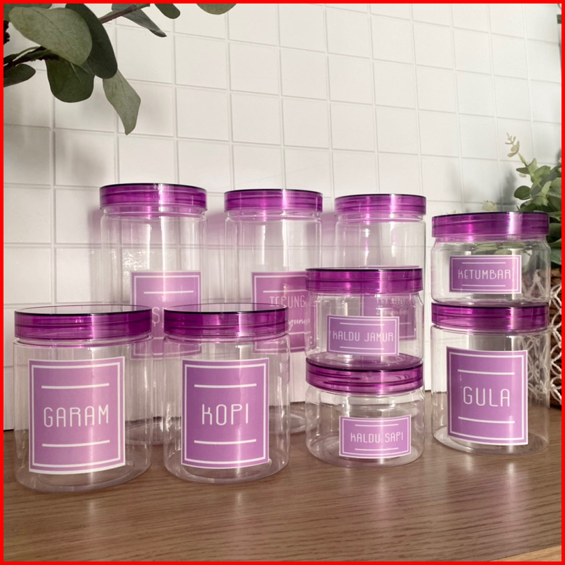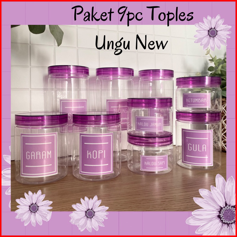 Paket Hemat 9 Toples Tutup Ungu Transparan Baru Elegan Free Stiker Anti Air