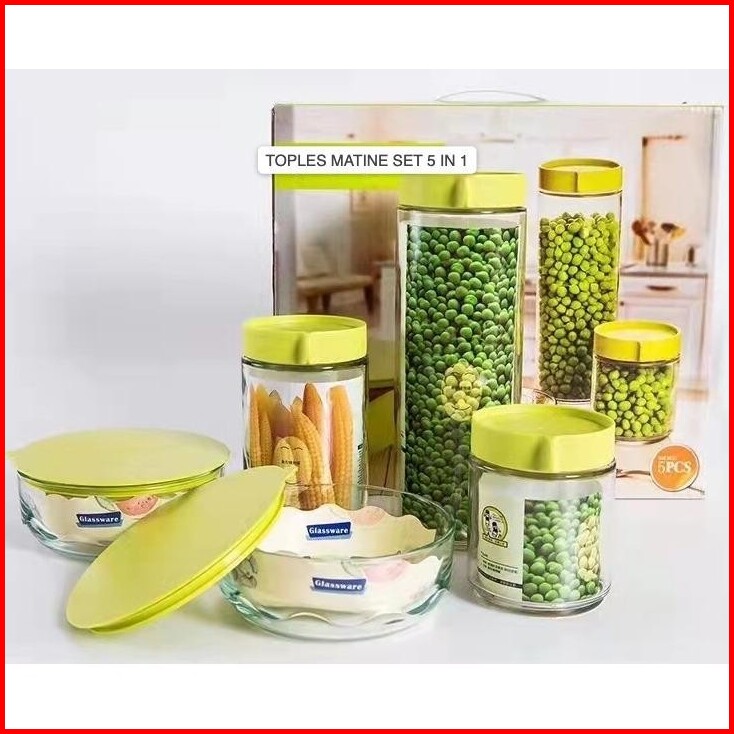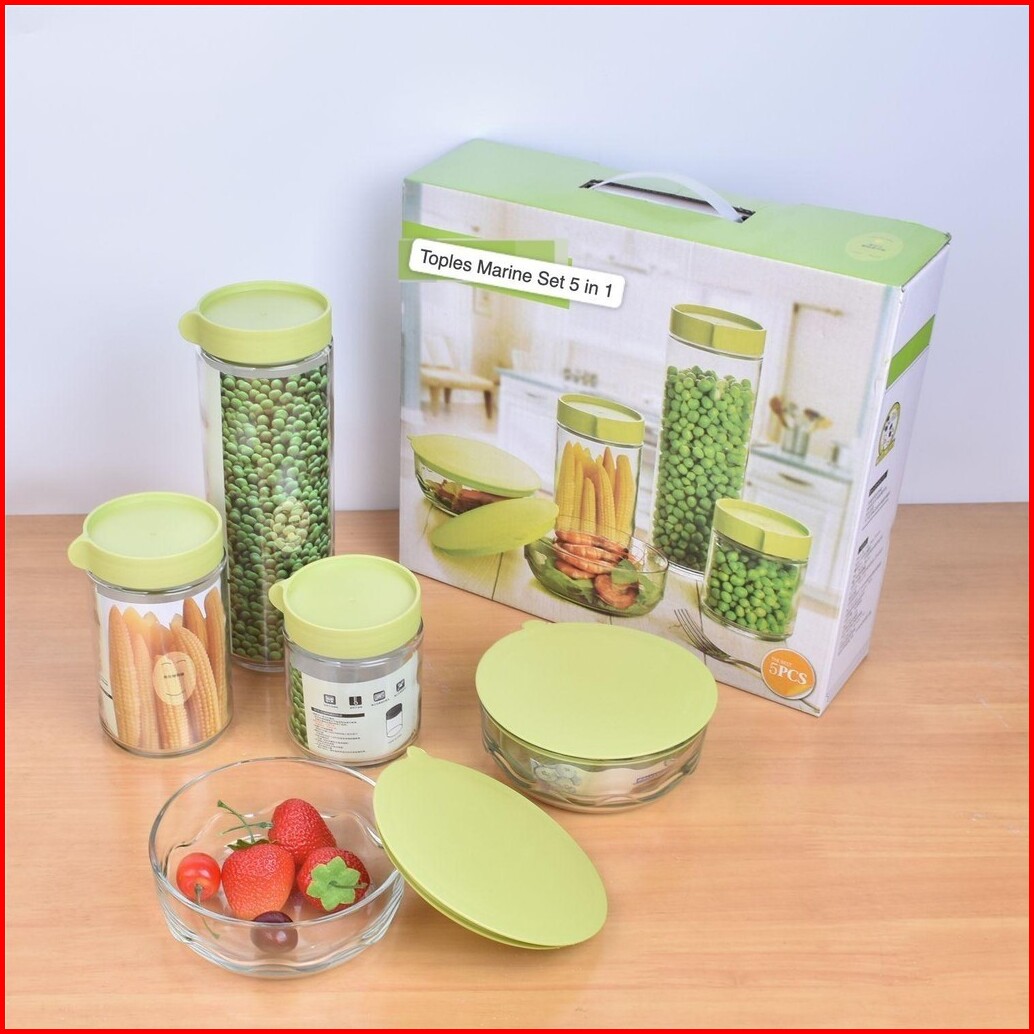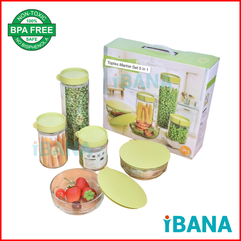 Ibana Toples Marine Bowl 5 In 1 Set Toples Serbaguna Viral Toples Makanan Ringan Toples Kaca Cocok Buat Hampers