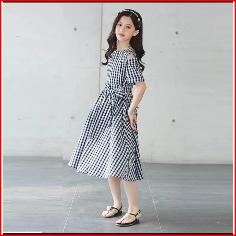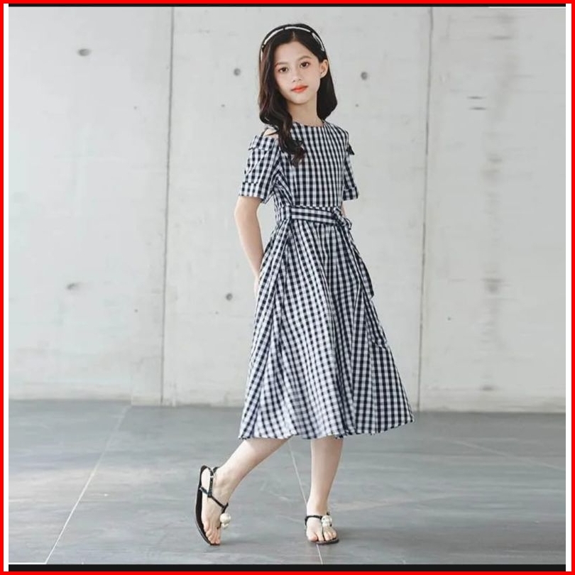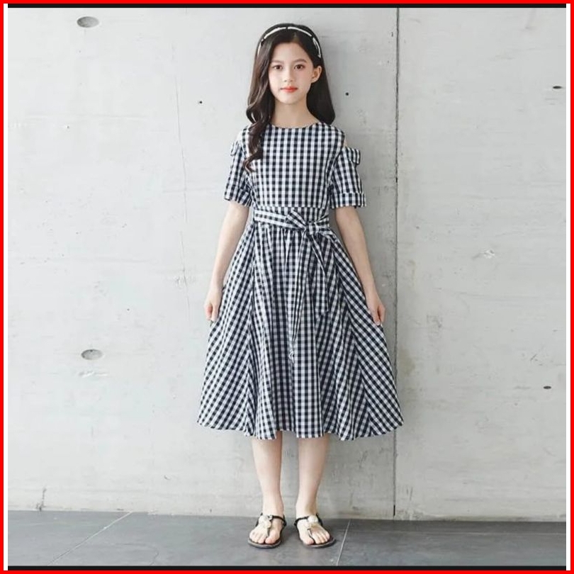 Dress Kotak Anak Perempuan Umur 4 Sampai 12 Tahun Baju Lebaran Korean Style Terbaru