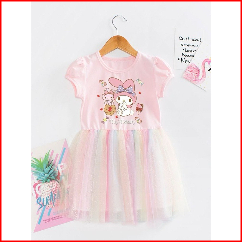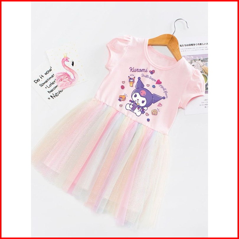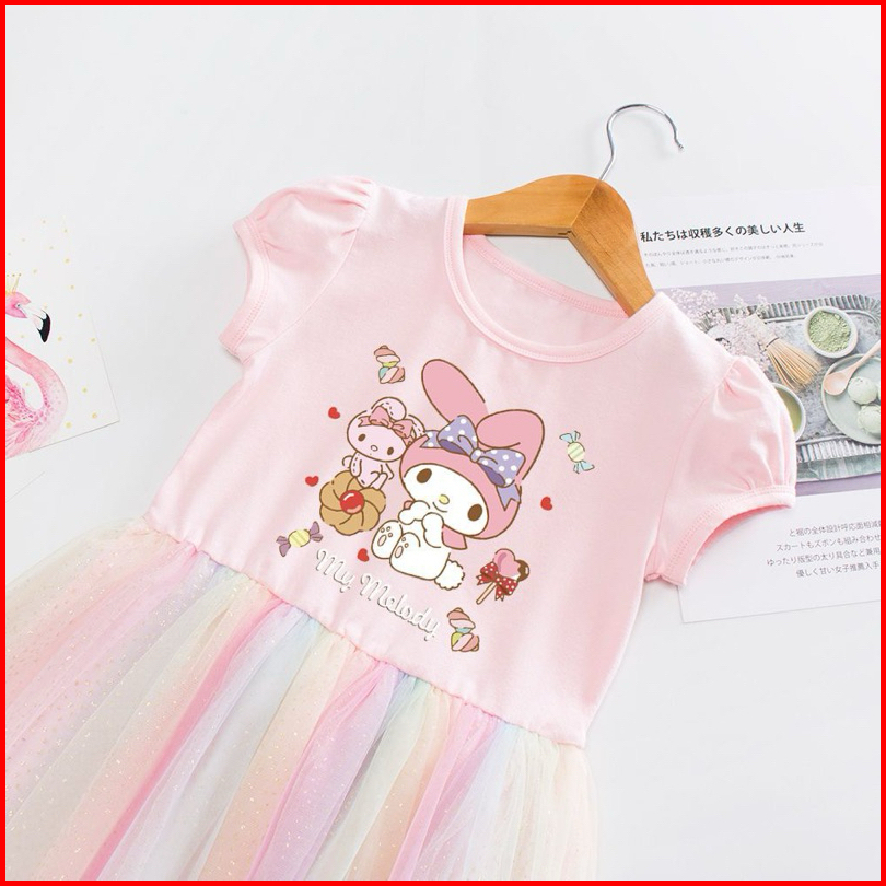 Luxica 2-9 Tahun Dress Anak Perempuan Sanrio Kuromi Melody Dress Pesta Anak Perempuan Termurah Dress Princess Gaun Pesta