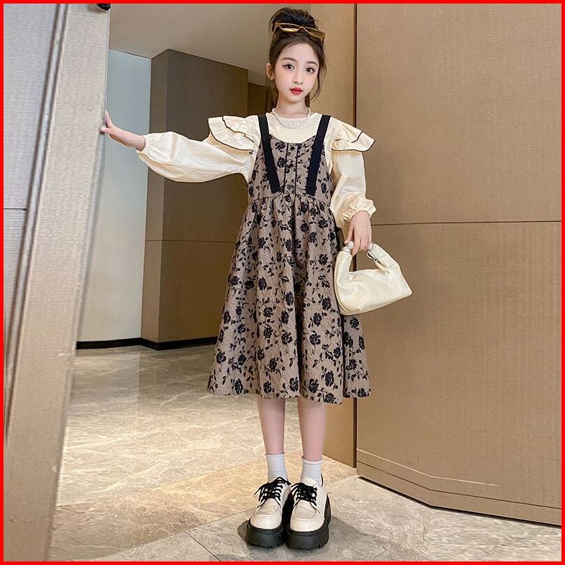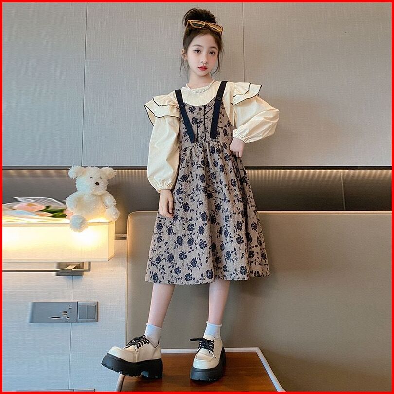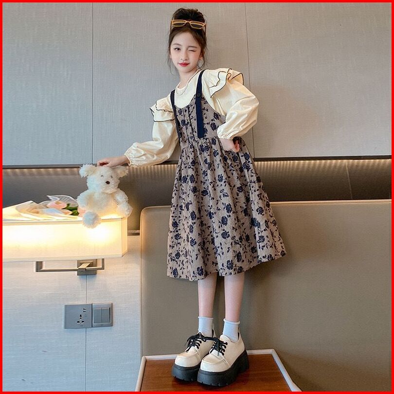 Blue Cherry 4-9tahun Dress Korea Style Tanggung Anak Kekinian Katun Premium Bunga Dress Anak Perempuan