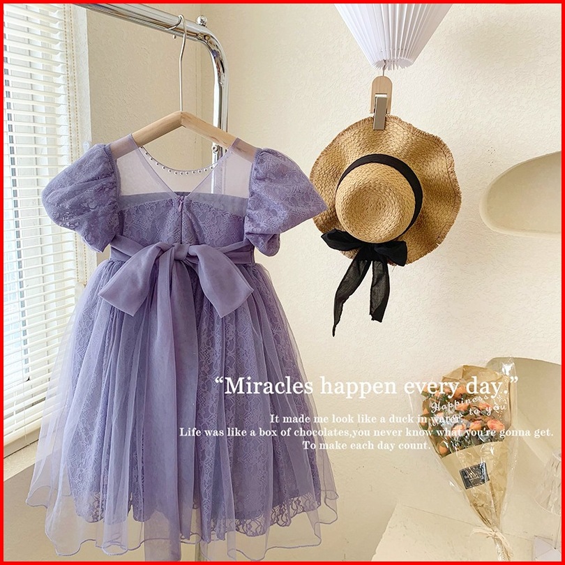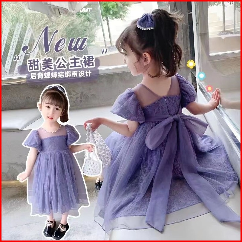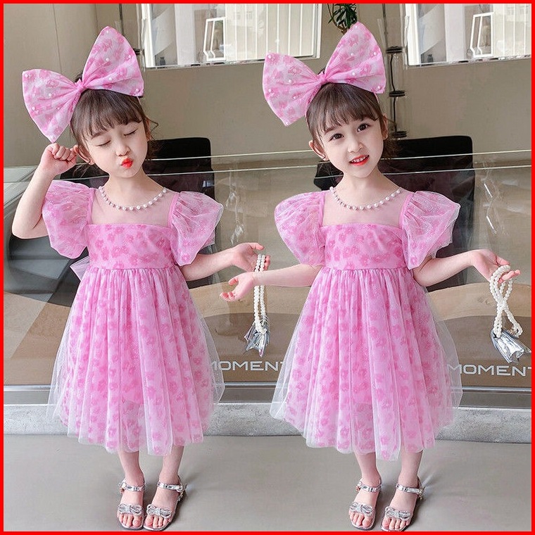 Princess Kesli 2-11 Tahun Dress Ungu Apricot Merah Jambu Pesta Magenta Bando Anak Perempuan Gaun