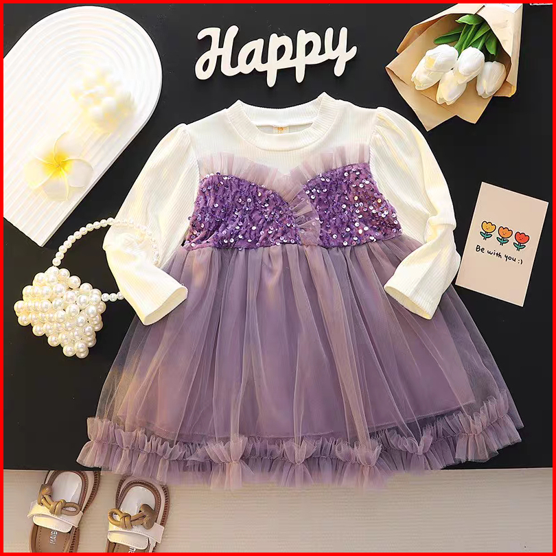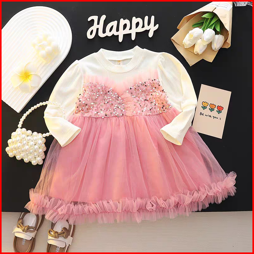 Kf Cat Dress Anak Perempuan Lengan Panjang Bahan Knite Tutu Gaya Korea Style Usia 1-4 Tahun