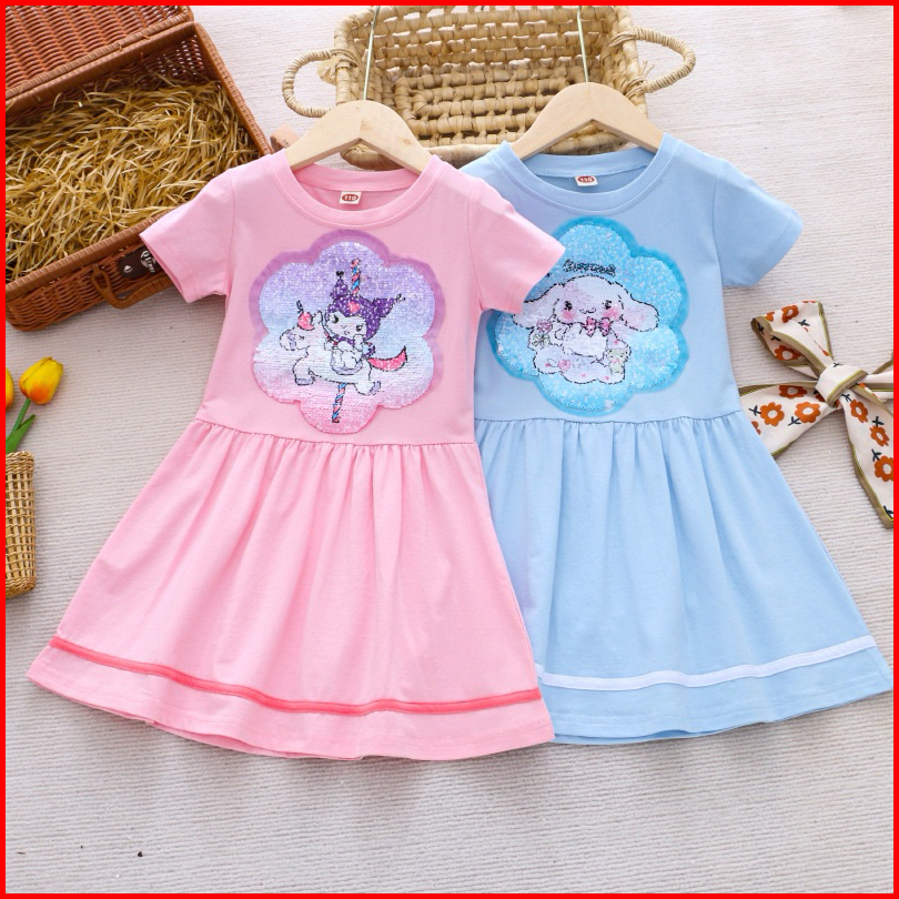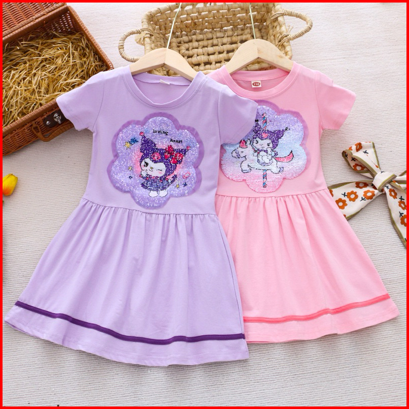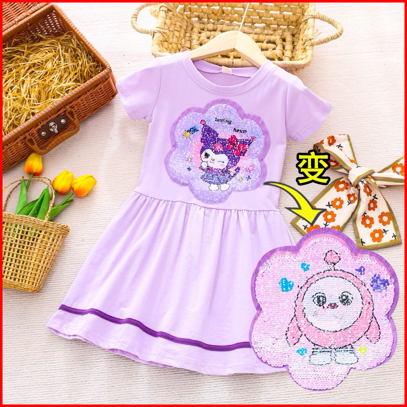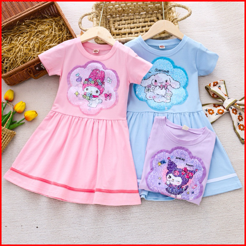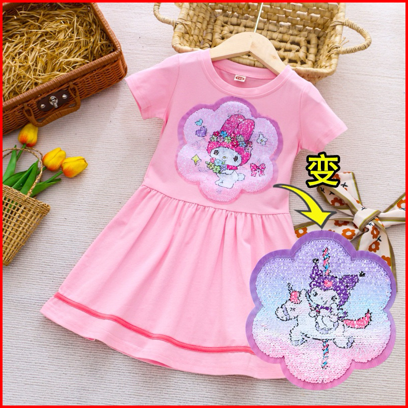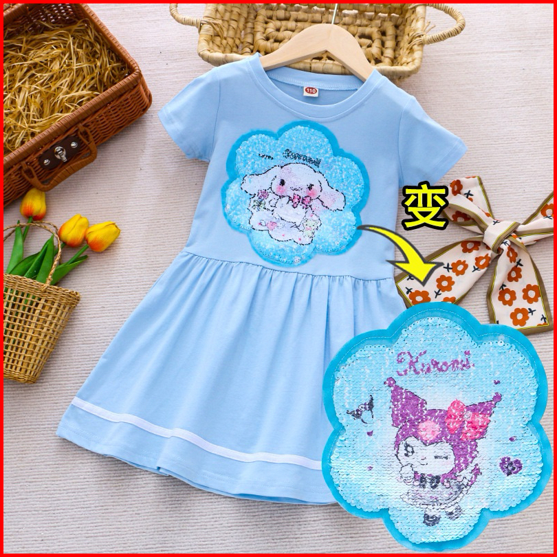 Luxica 4-10 Tahun Dress Sanrio 3d Sequin Anak Perempuan Termurah Dress Pesta Sanrio Kuromi Dress Pesta Sanrio Cinamoroll