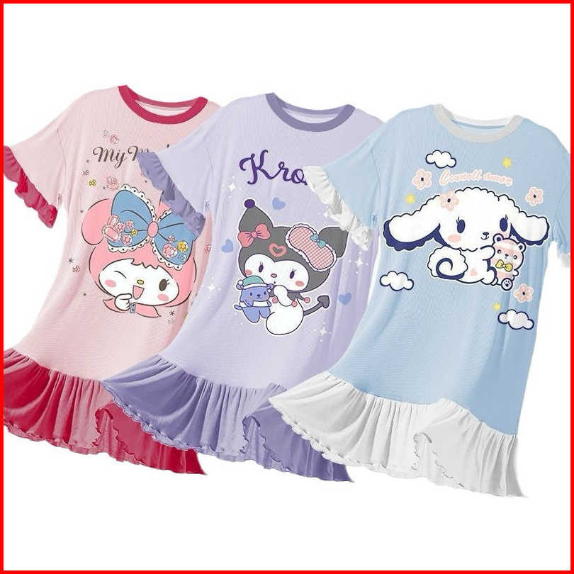 Luxica 3-14 Tahun Daster Anak Perempuan Sanrio Dress Santai Daster Santai Viral Anak Perempuan Termurah Piyama Dress San