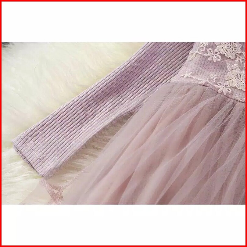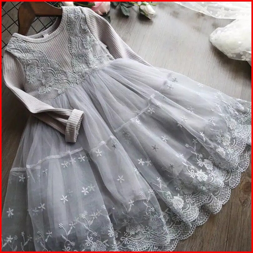 1t-7t Dress Tutu Anak Lengan Panjang Pink Dan Aabu