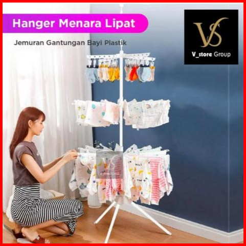 Bk Jemuran Menara Jemuran Menara Hanger Baju Lipat Model Tiang 3 Susun Gantungan Tower Cucian Bayi Jepitan Pakaian