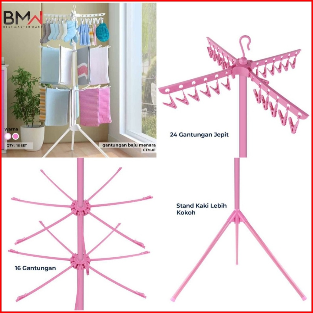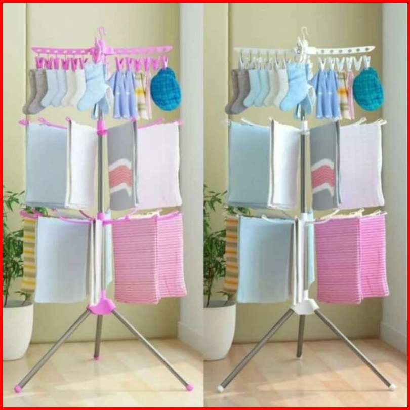 Jemuran Menara 3 Tingkat Jemuran Pakaian Bayi Rak Jemuran Rak Pengering Jemuran
