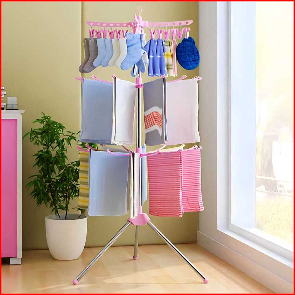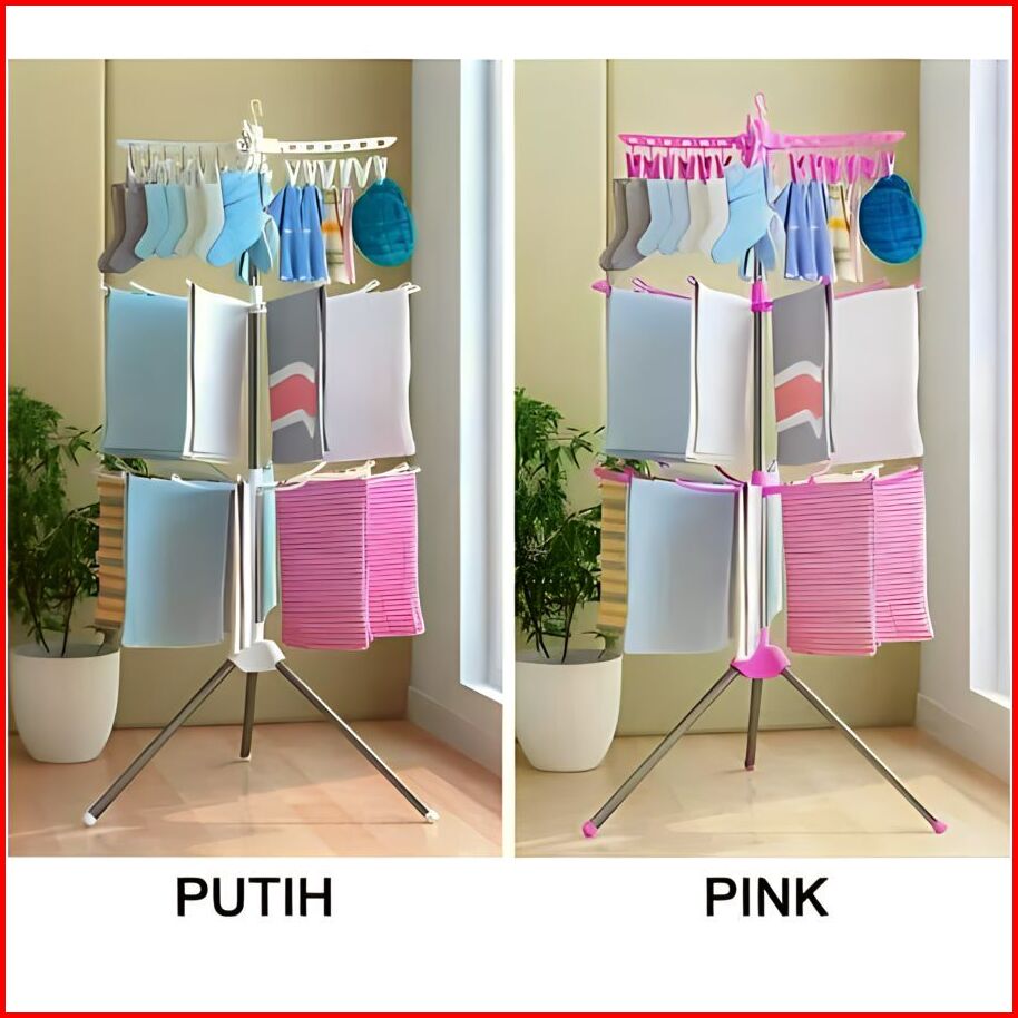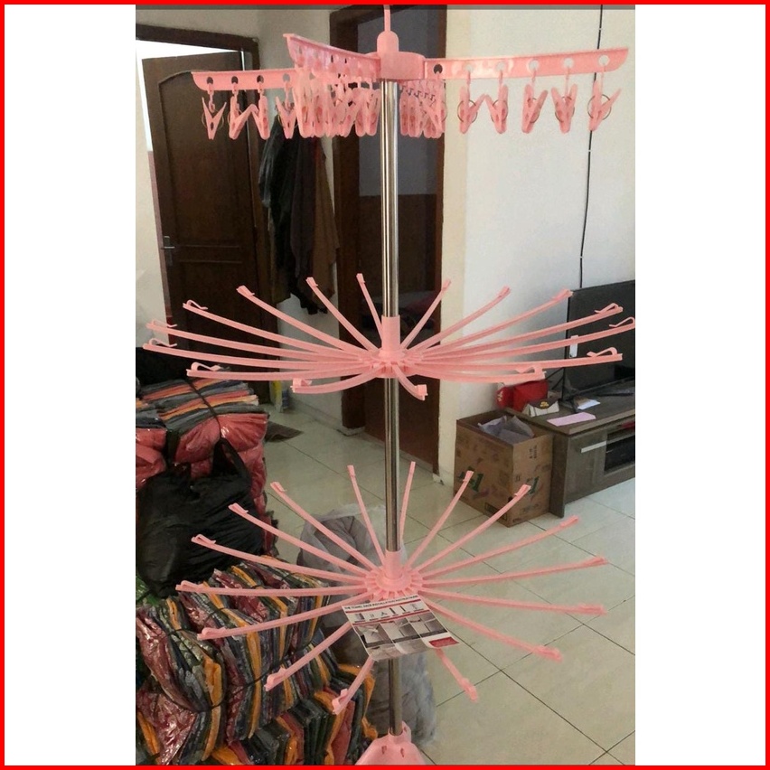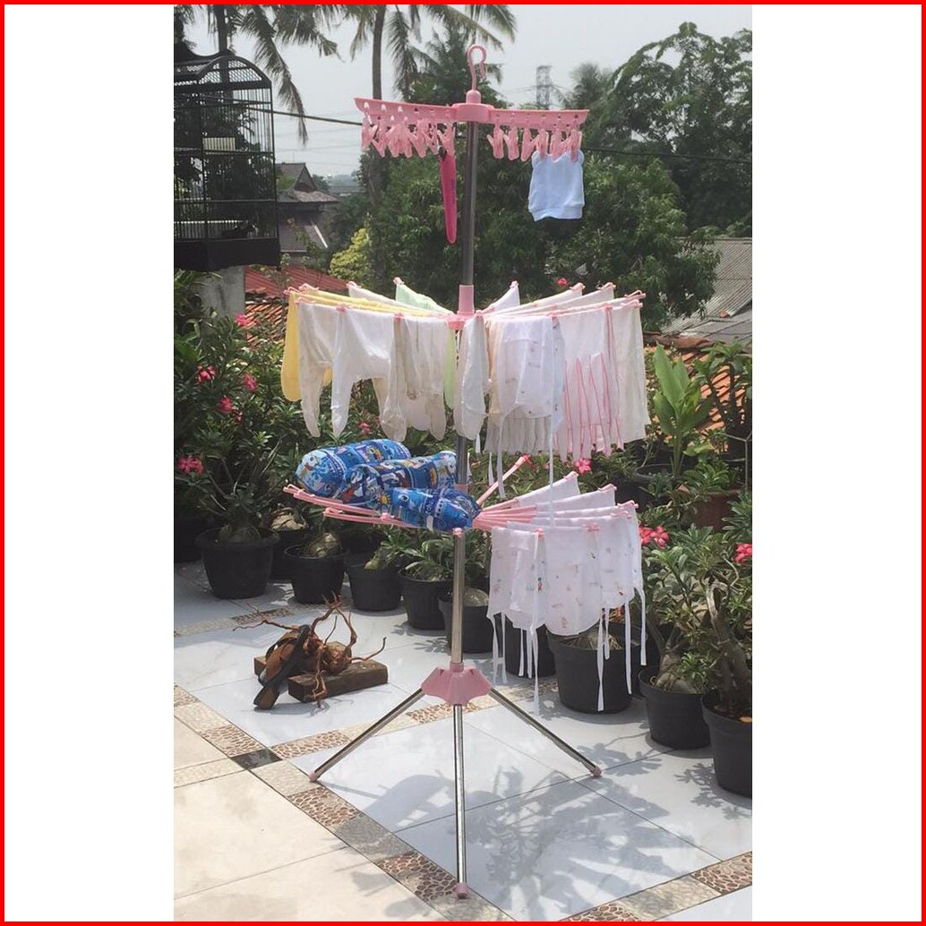 Jemuran Menara Tingkat 3 Gantungan Baju Bayi Putar Merk Shenar Stainless Kuat Jemuran Pakaian Anak