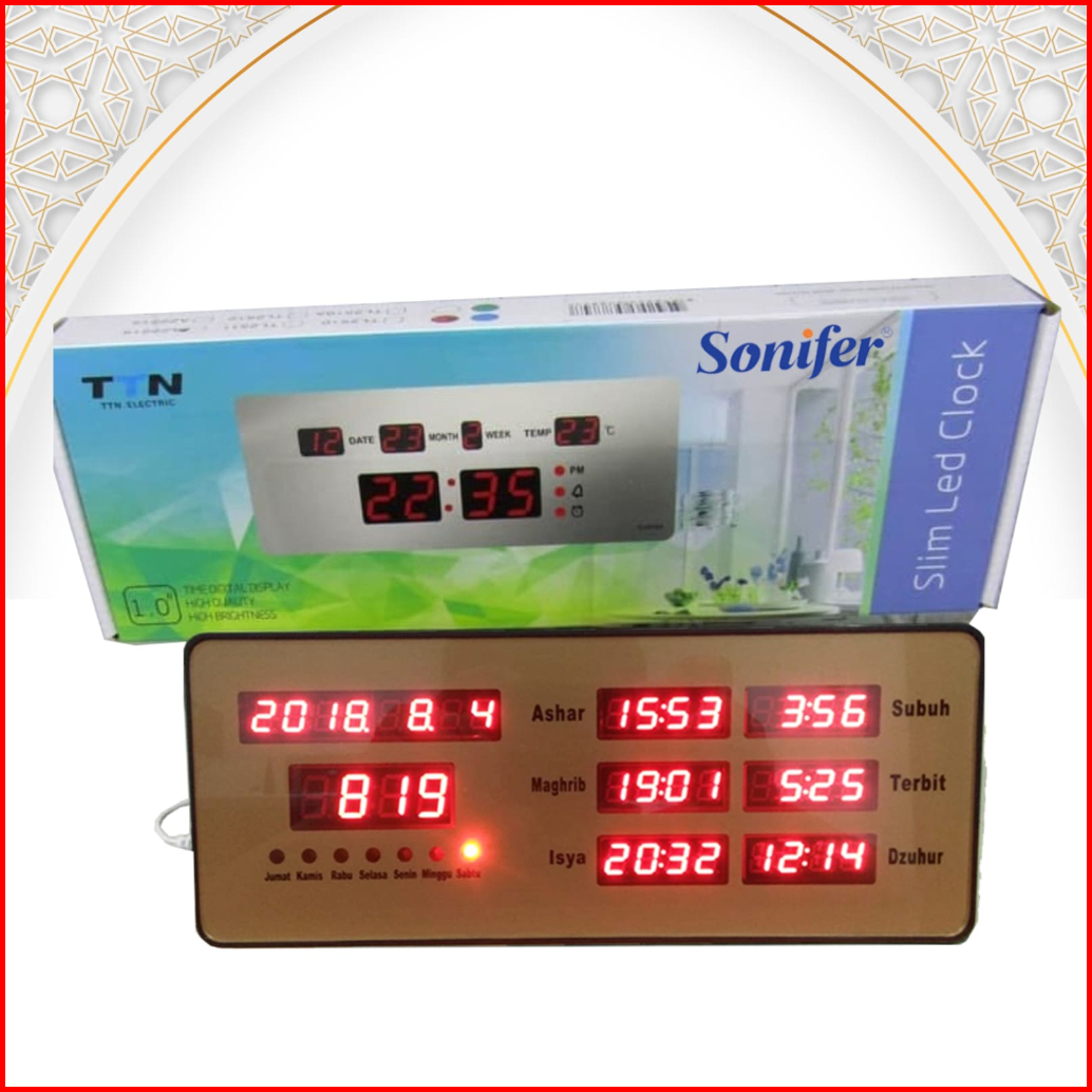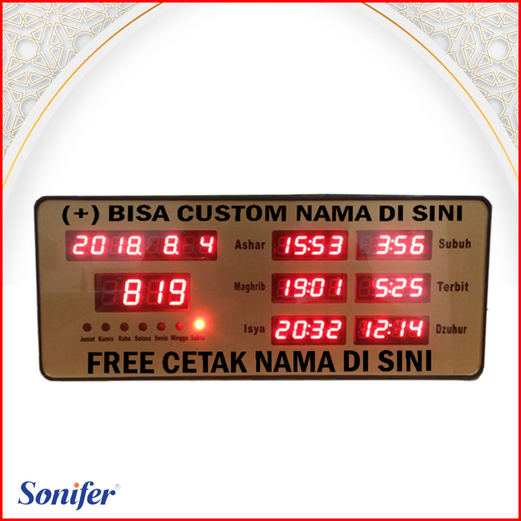 Sonifer Jam Adzan 25 X 10 Cm Jadwal Sholat Otomatis Suara Azan Beep Beep Free Custom Nama
