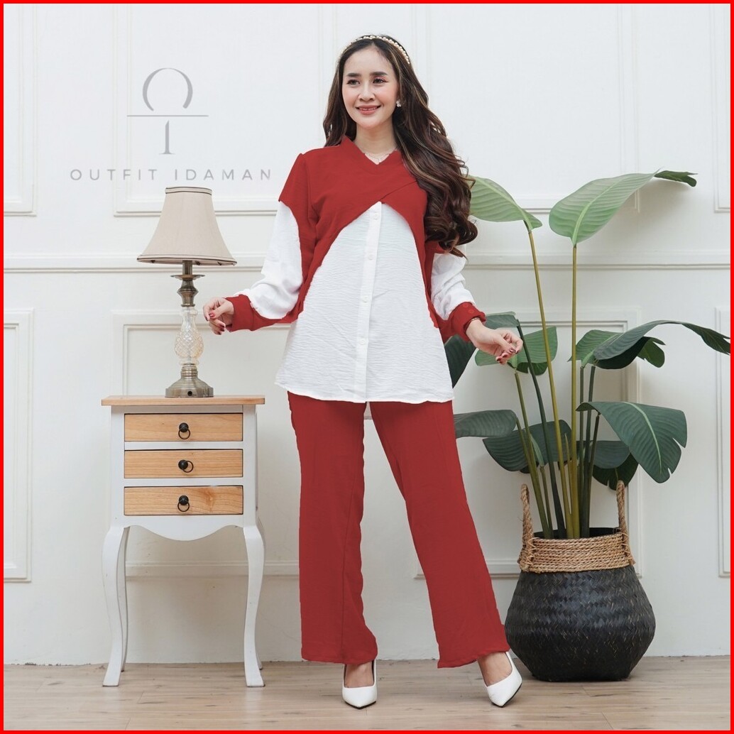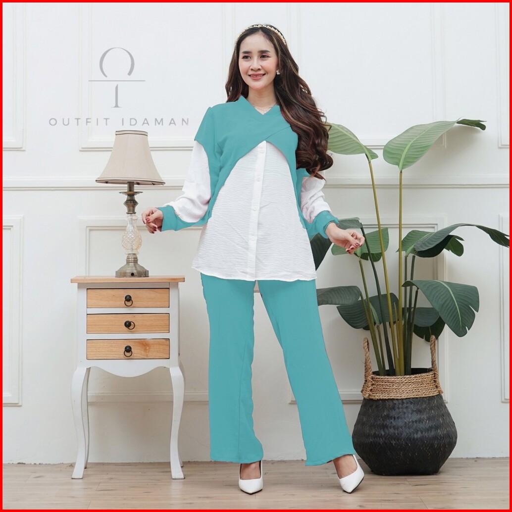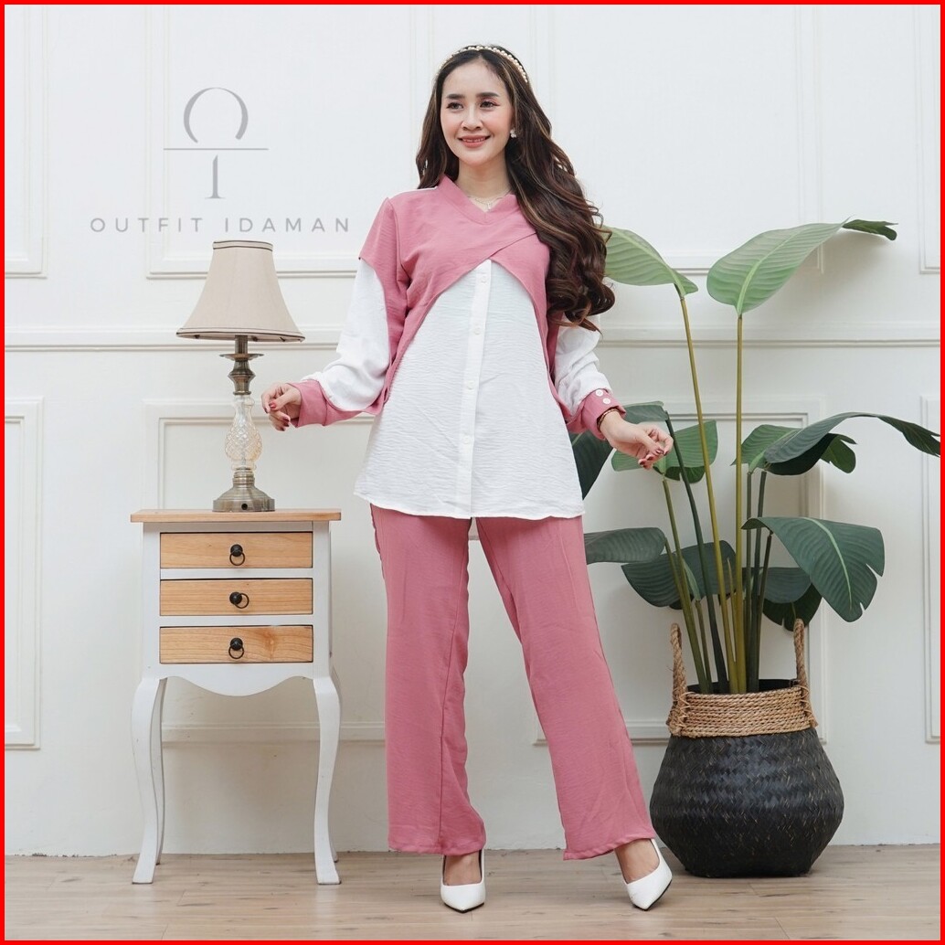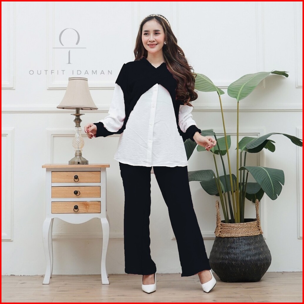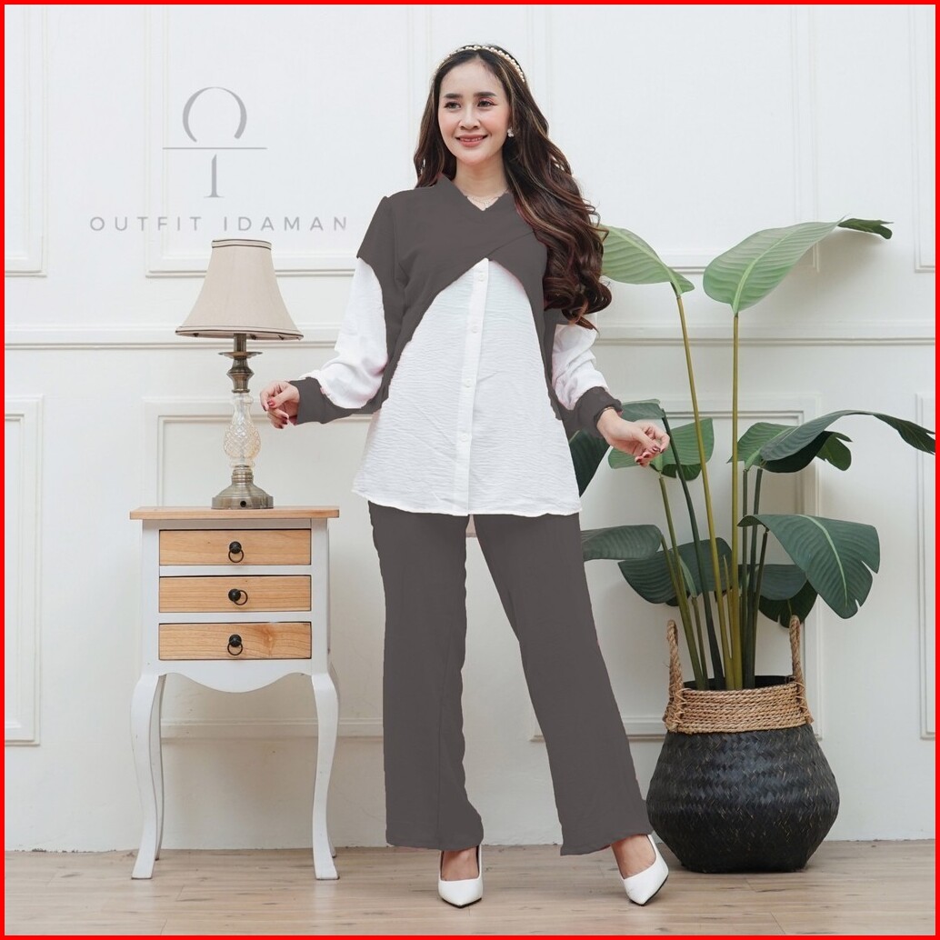 Setelan Baju Wanita Terbaru Risella Set Outfit Wanita Kekinian Crinkle Airflow M L Xl Xxl