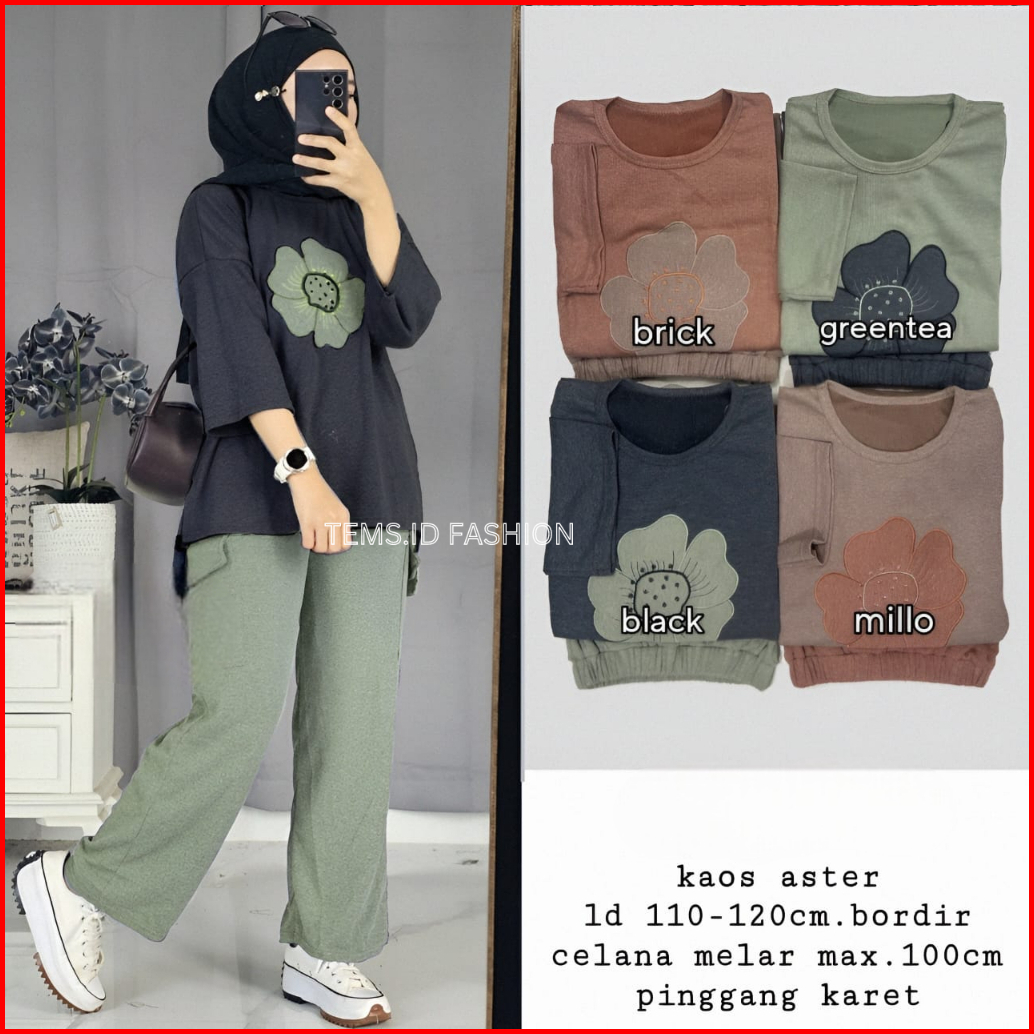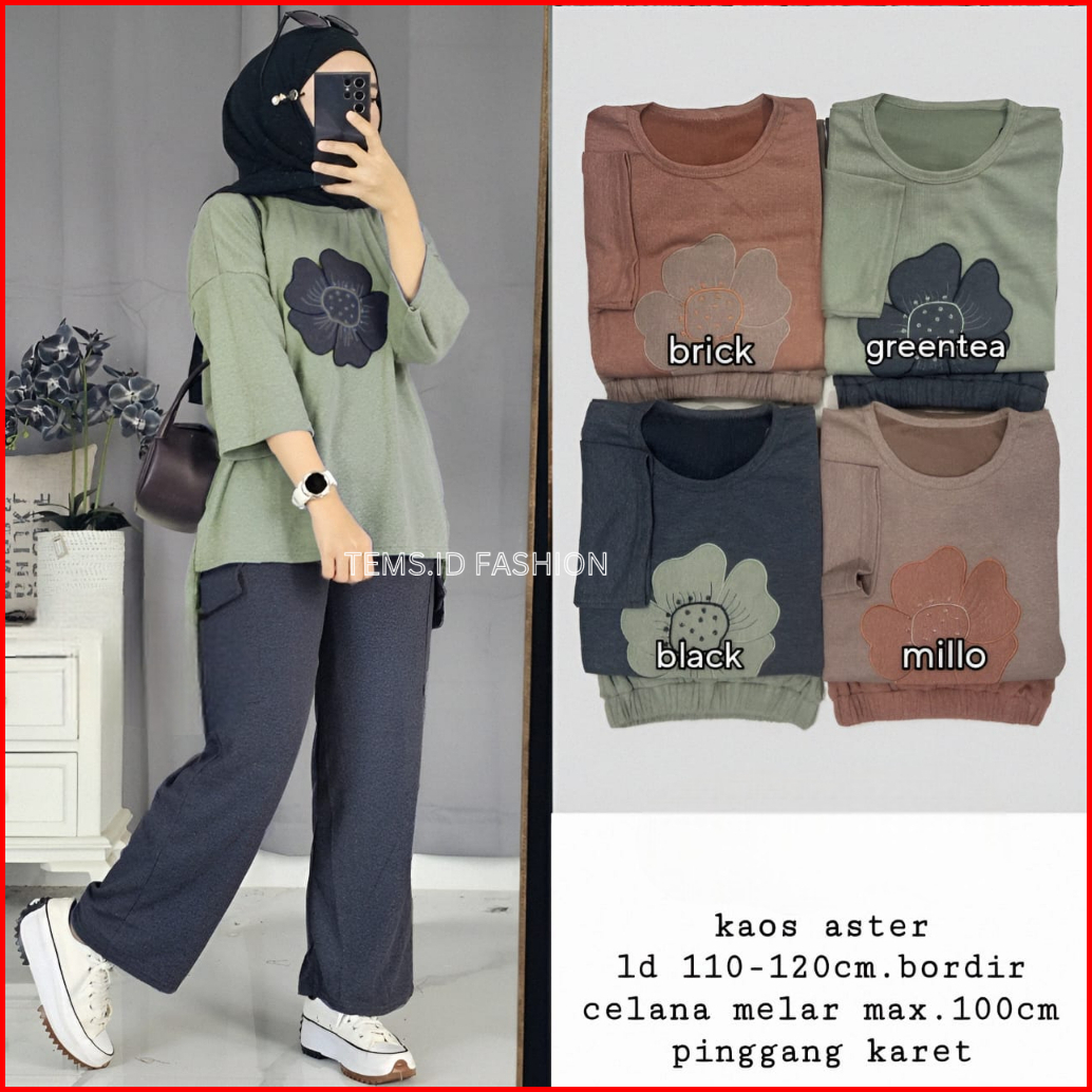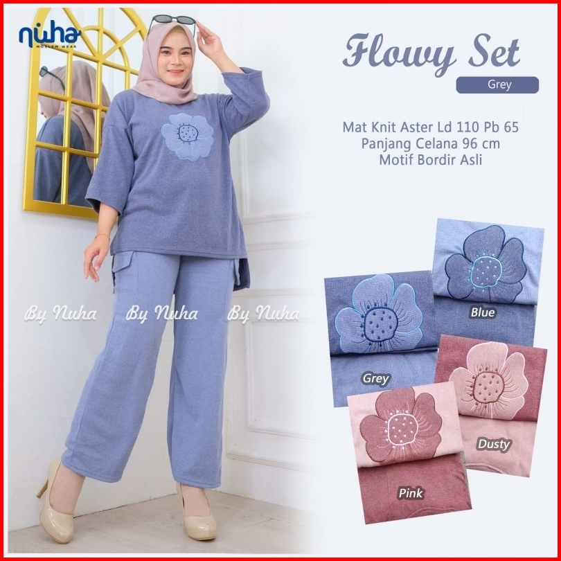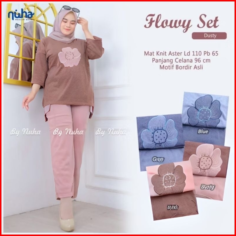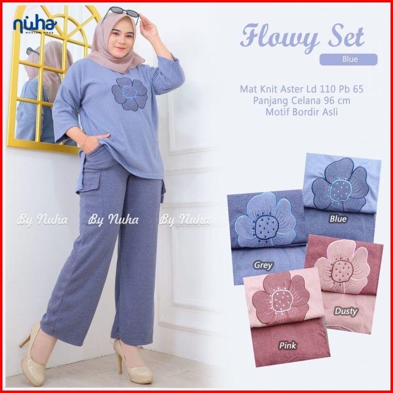 Flowy Set Cargo Bahan Knit Aster Tebal Halus Melar Ld 110cm Baju Setelan Harian Wanita Polos Motif Bunga Terbaru 2024 Be