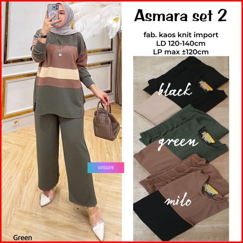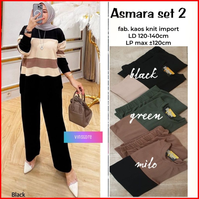Setelan Wanita Jumbo Asmara 2 Set Bahan Kaos Knit Import Ld120-140cm Celana Pinggang Karet