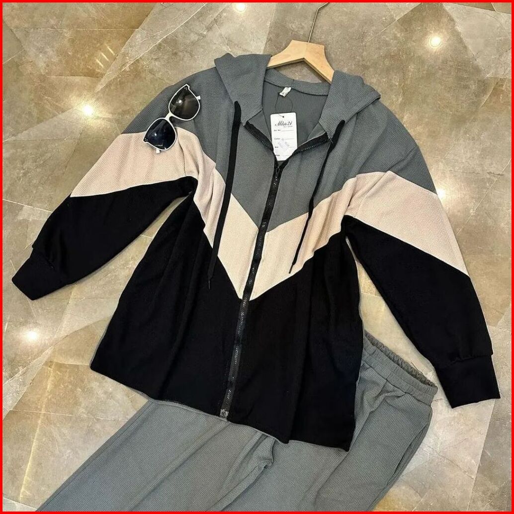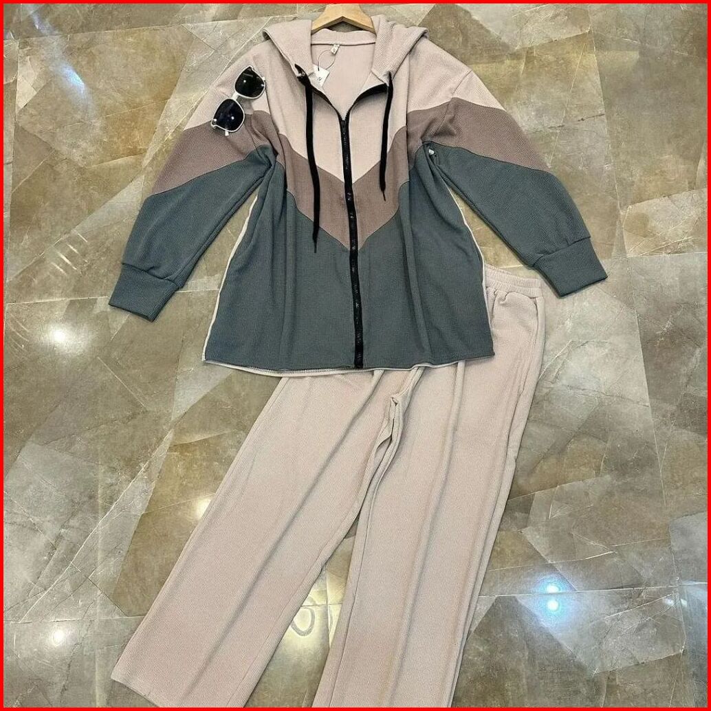 Sora Set Fashion Setelan Wanita Bahan Caramel Knit One Set 2 In 1 Atasan Hoodie Dan Celana Kekinian