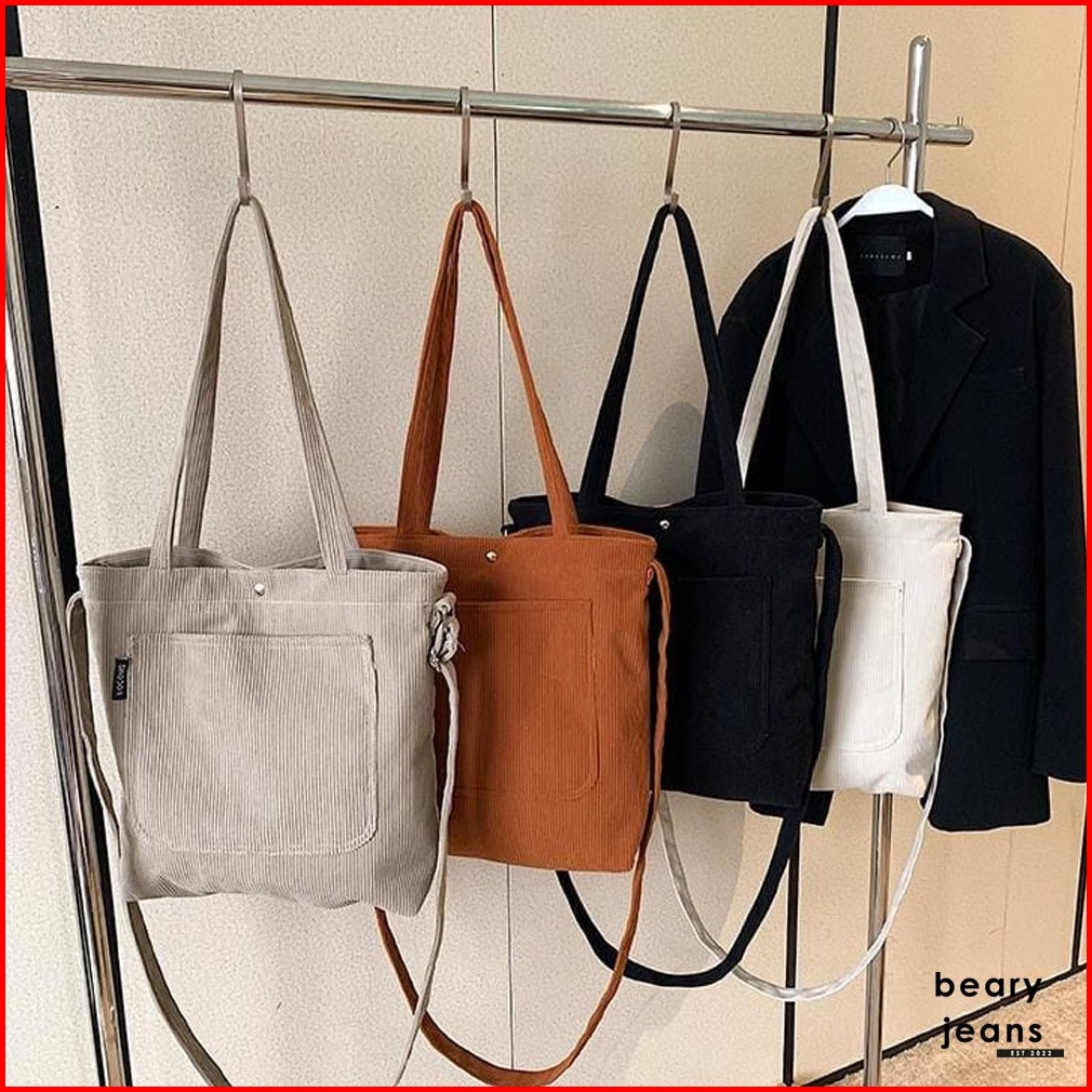 Beary Jeans Bj235 Corduroy Tote Bag Tas Bahu Selempang Casual Shoulder Bag Large Capacity Import Premium