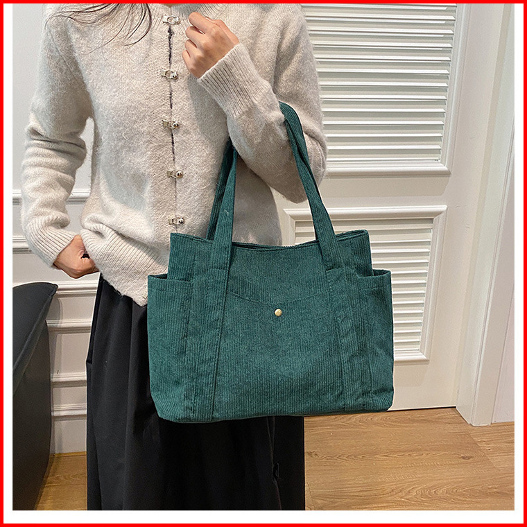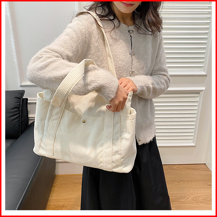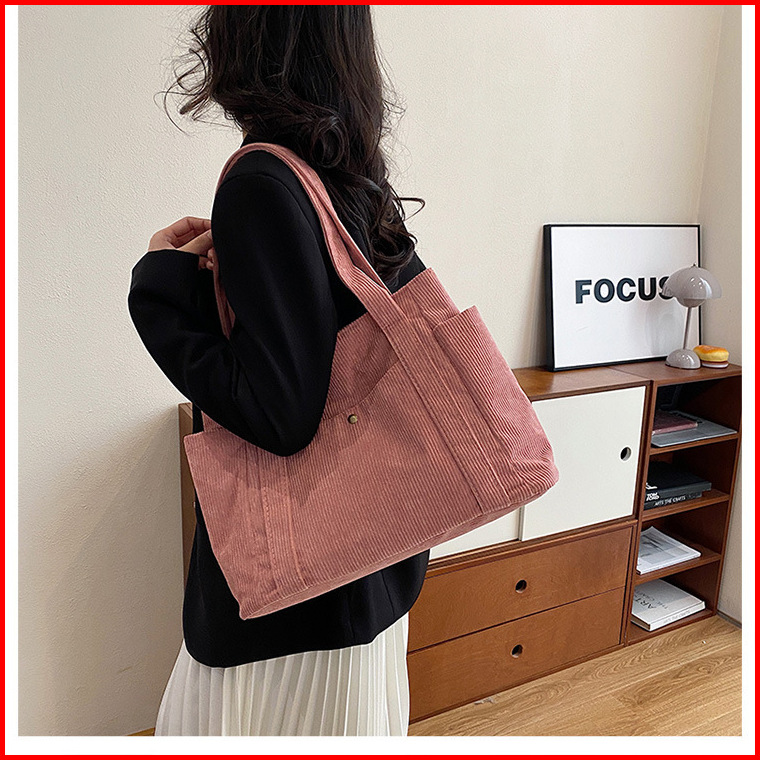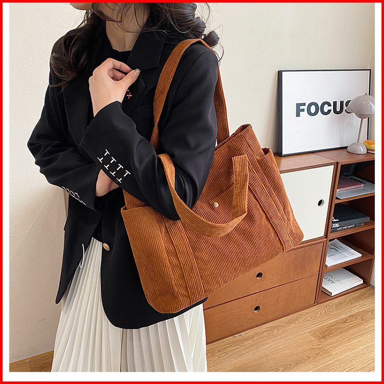 Hayden Soleil Bag Tote Bag Korduroi Polos Fashionable Wanita Korea Tas Jinjing Muat Laptop Elegan - Hyb3j