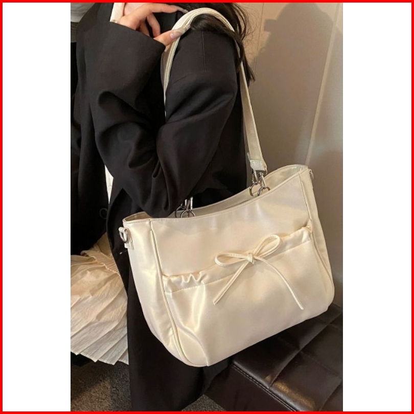 Ribbon Shimer Tote Muat Laptop Long Strap