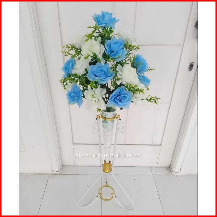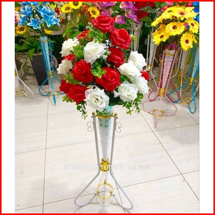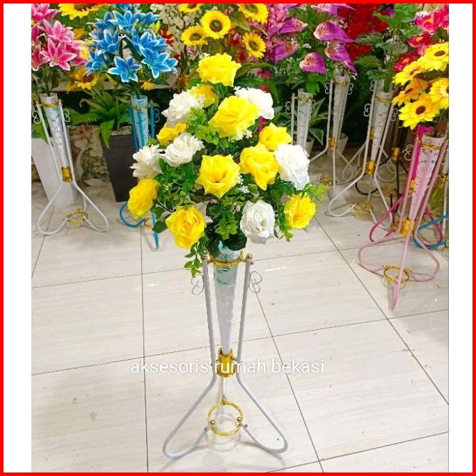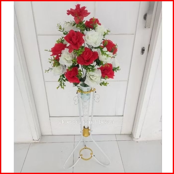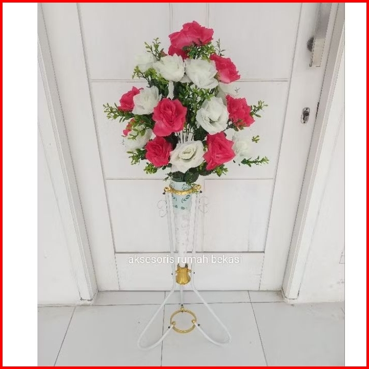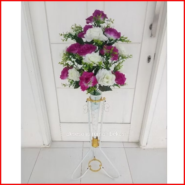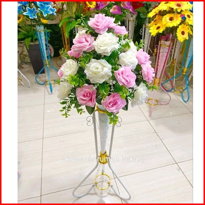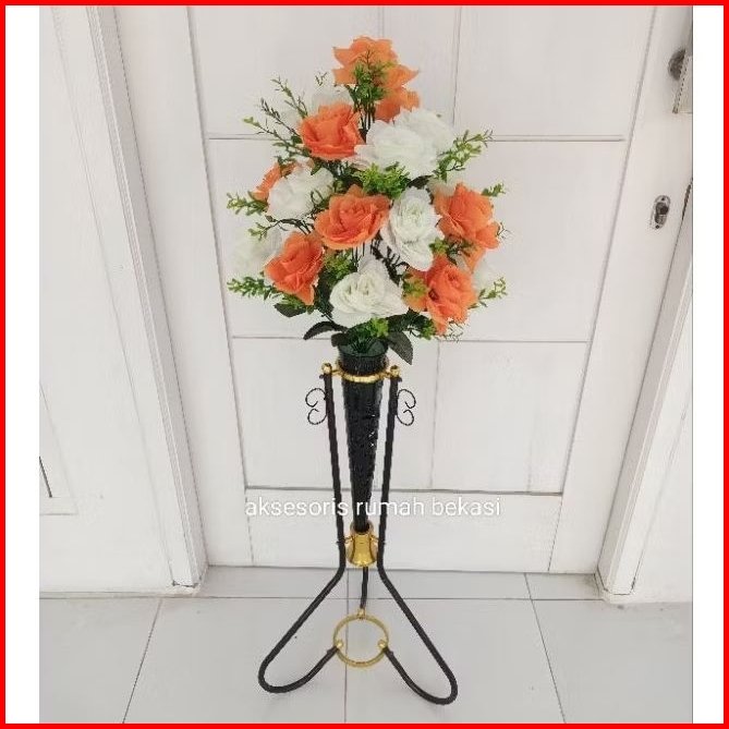 Rangkaian Bunga Artificial Mawar Kombinasi Dengan Pot Standing Besi