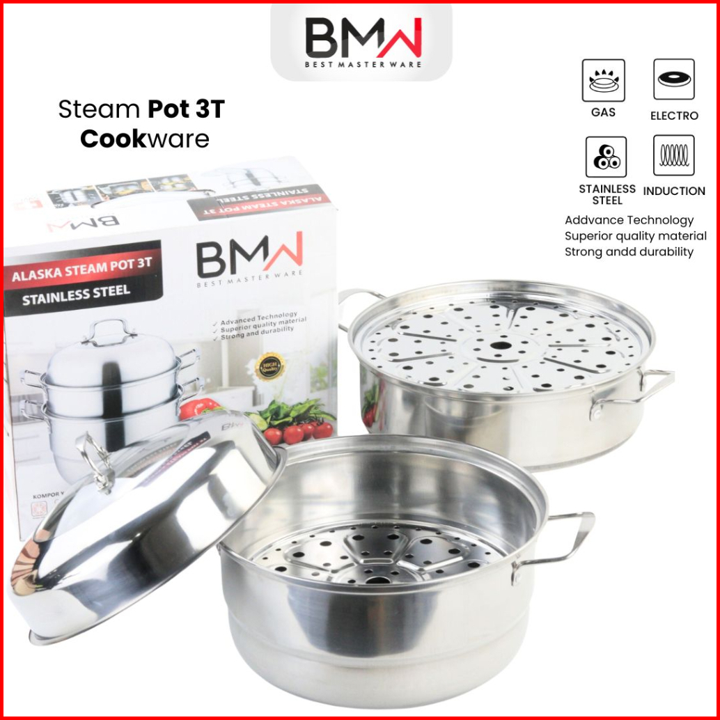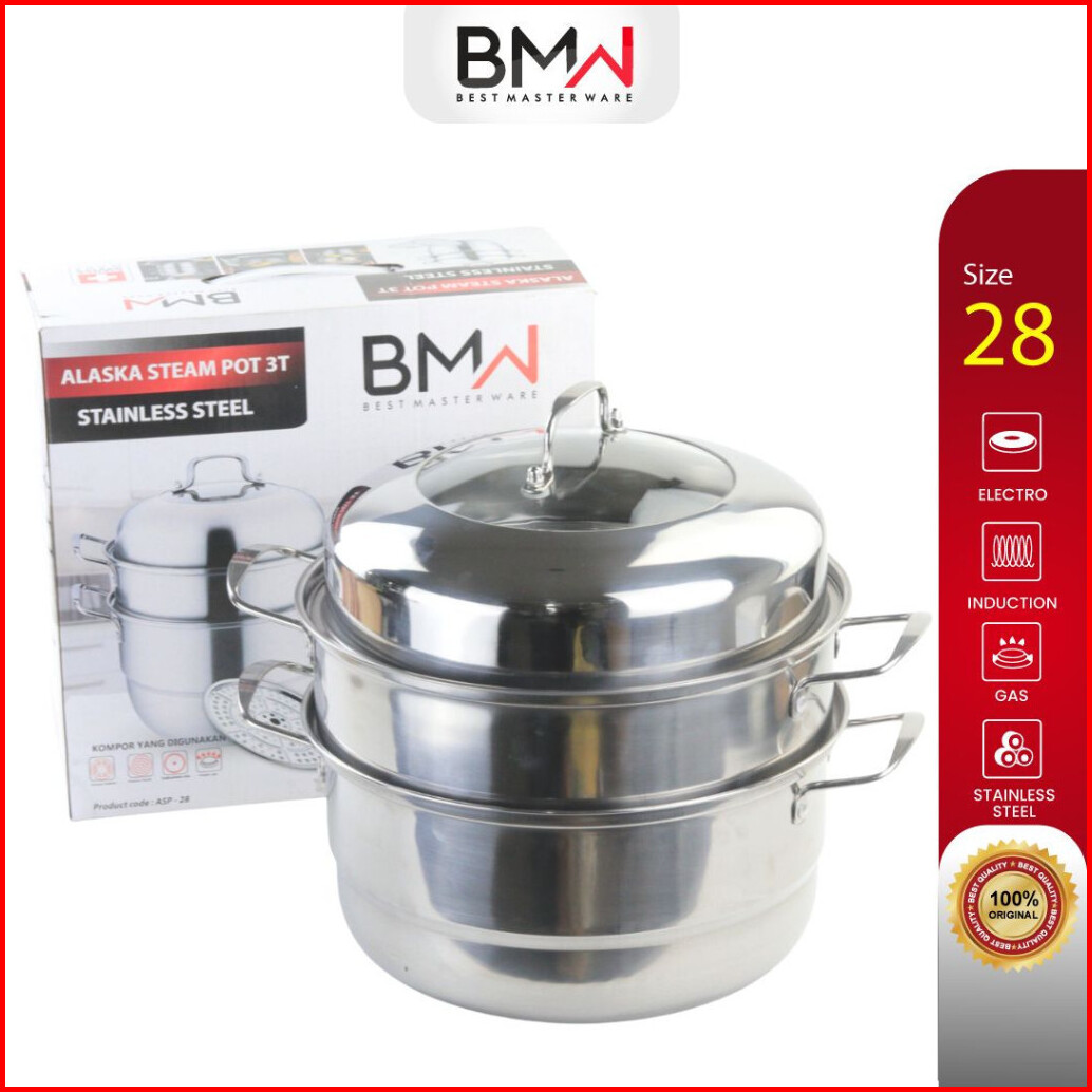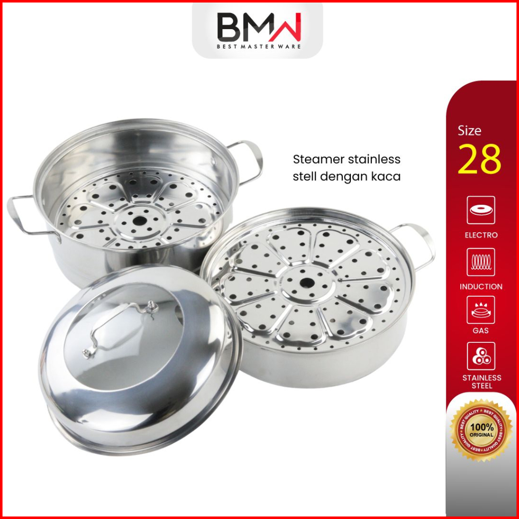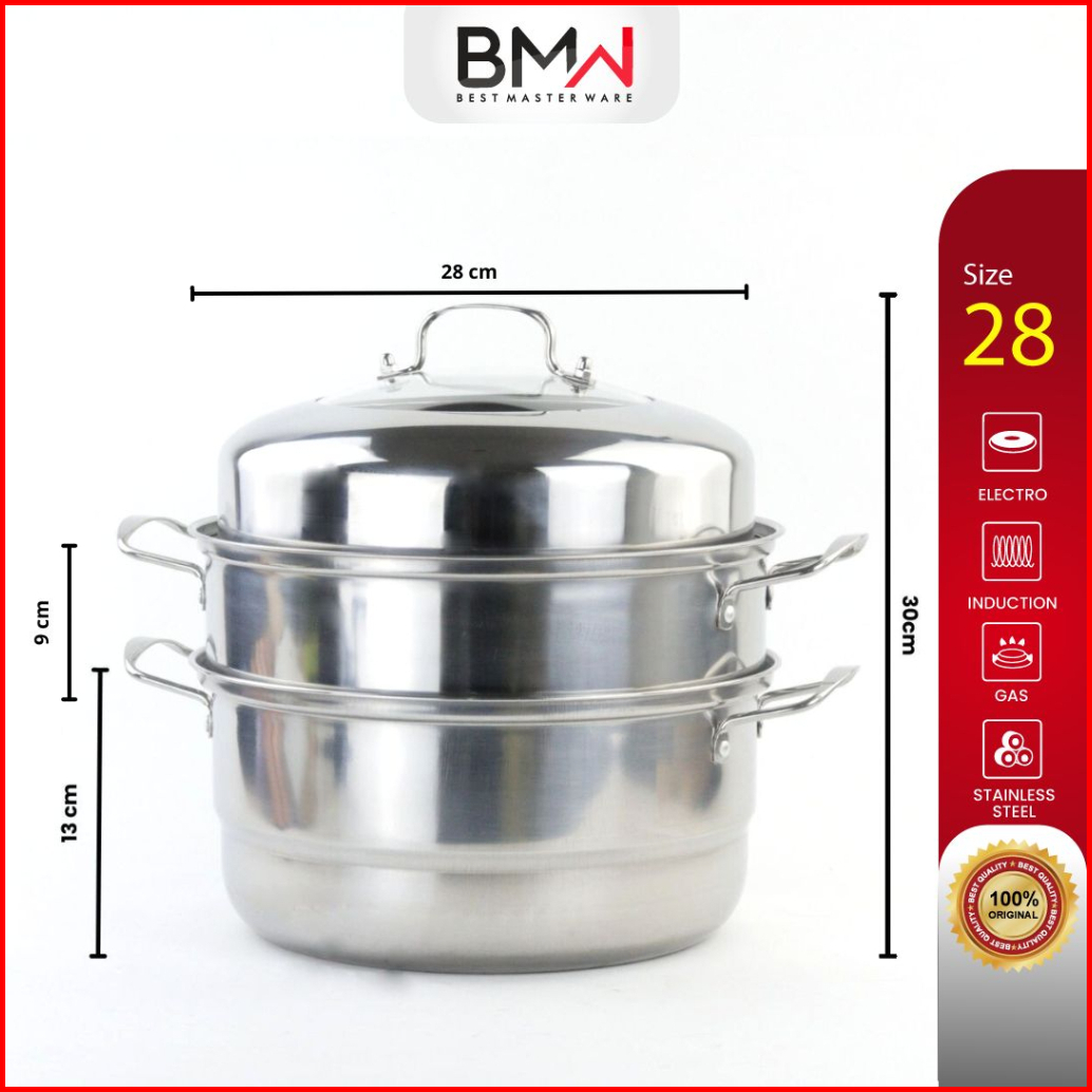 Bmw Kitchen Ware - Panci Kukus Siomay 28cm Panci Dimsum Bakpao Nasi Tim Steamer Dandang Stainless Steel Susun 3
