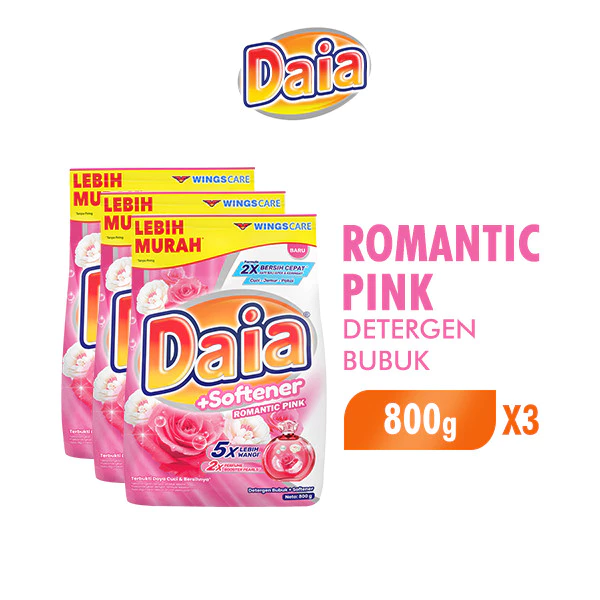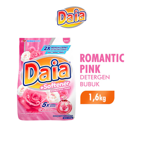 Daia Deterjen Bubuk Romantic Pink Softener | Daia 4 kg | Daia 1 kg | Sabun Cuci Pakaian | Deterjen Bubuk Deterjen Cair