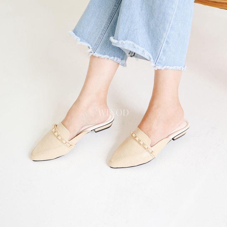 Sandal Slip On Wanita Sandal Wanita Kekinian WINOD Croco Mules 2cm Sepatu Wanita Slip On Elegan Daily