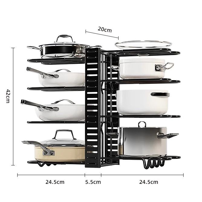 Rak Tutup Panci Rak Piring Besi Rak Dapur Stainless Steel Serbaguna 8 Tingkat