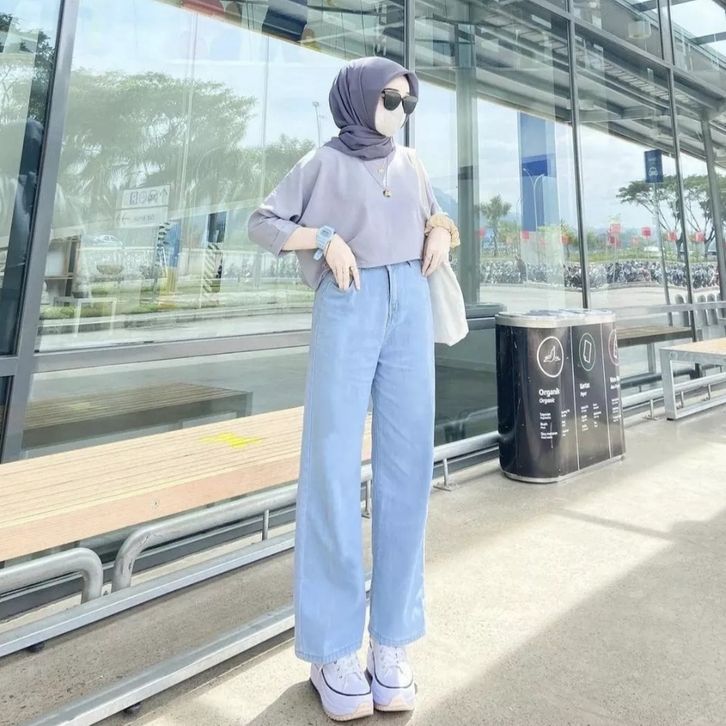 CELANA KULOT JEANS WANITA TERBARU ACID GREY PANJANG 100 HIGHWAIST KOREA STYLE