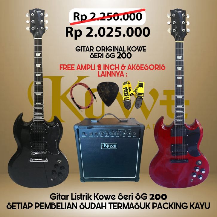 Paket Bundle Hemat Gitar Listrik Original Merk Kowe Original Seri SG 200 Bonus Ampli 8 inch