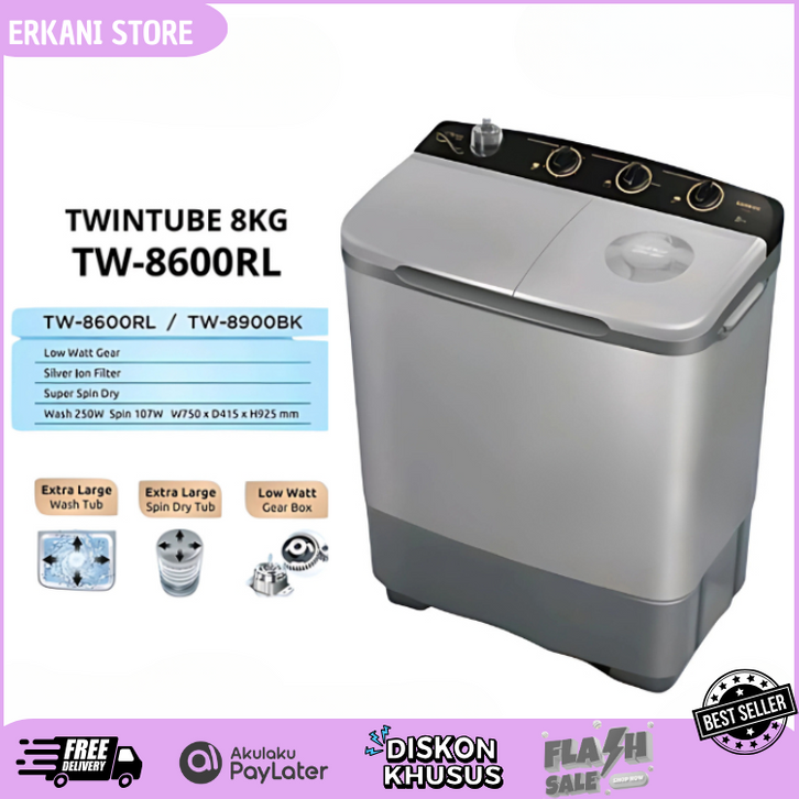 [Mall] Mesin Cuci Sanken 2 Tabung 8kg Tw-8600rl Bukan 10 9 11 12 7kg Terlaris Gratis Ongkir