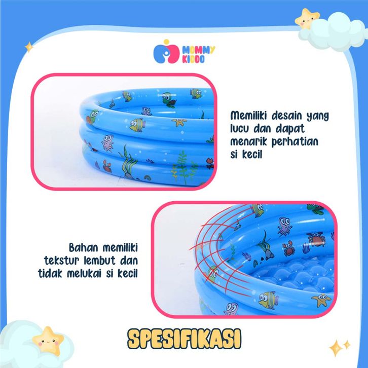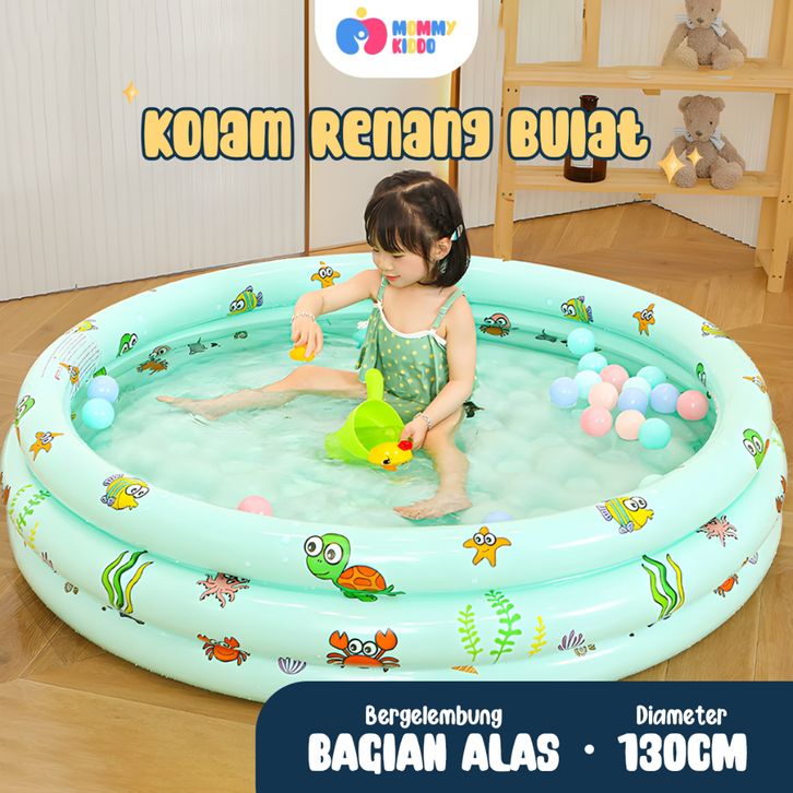 MOMMYKIDDO Kolam Renang Anak Pompa Portable Bentuk Bulat Ukuran 130cm Jumbo Alas Bergelembung Bahan PVC Premium