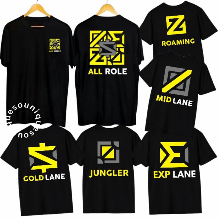 UNIQUESO - Kaos Distro Lengan Pendek ALL ROLE MOBILE LEGEND MLBB Role Exp Jungler Mid Gold Lane Baju atasan oblong pria